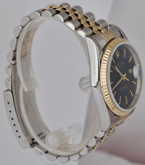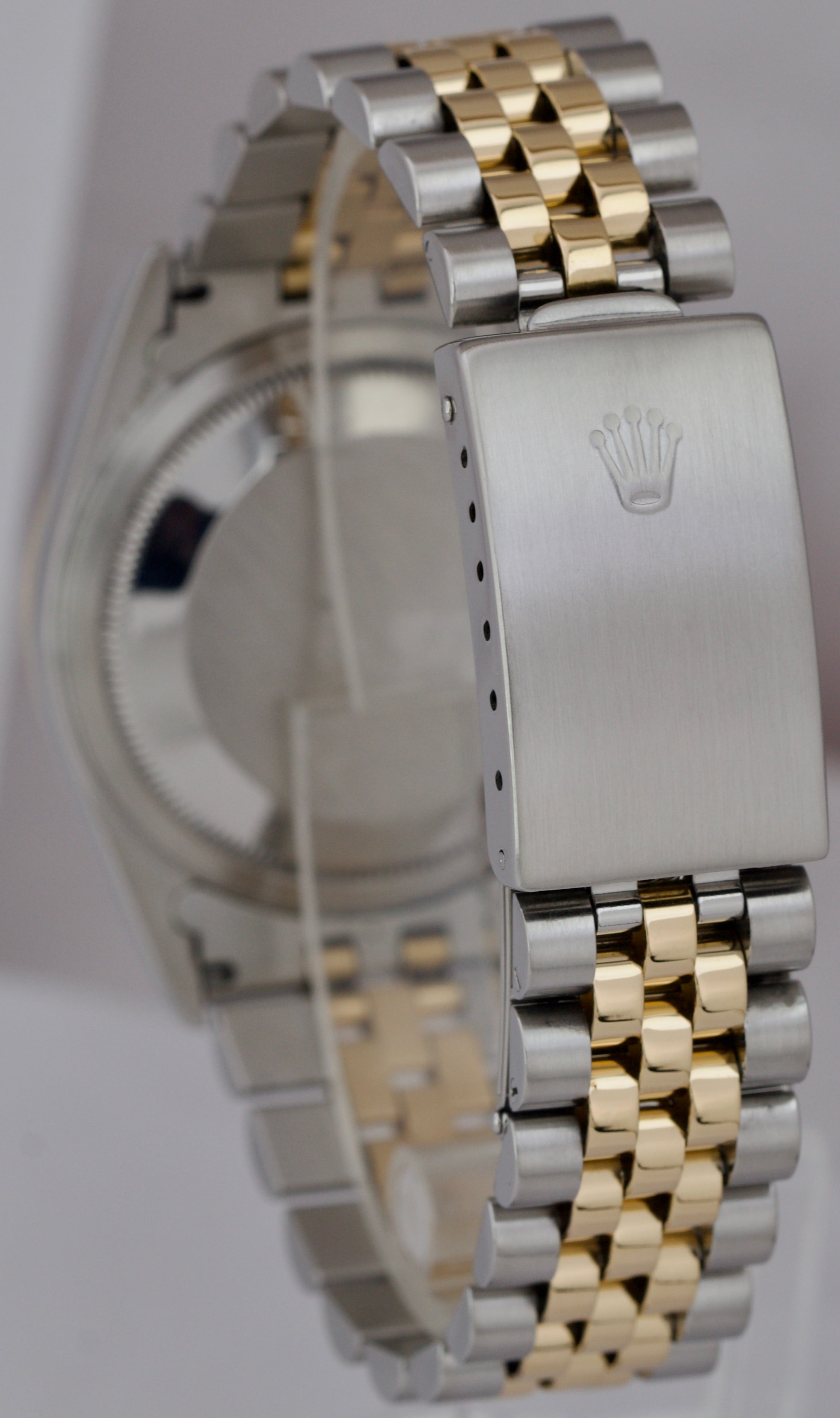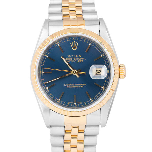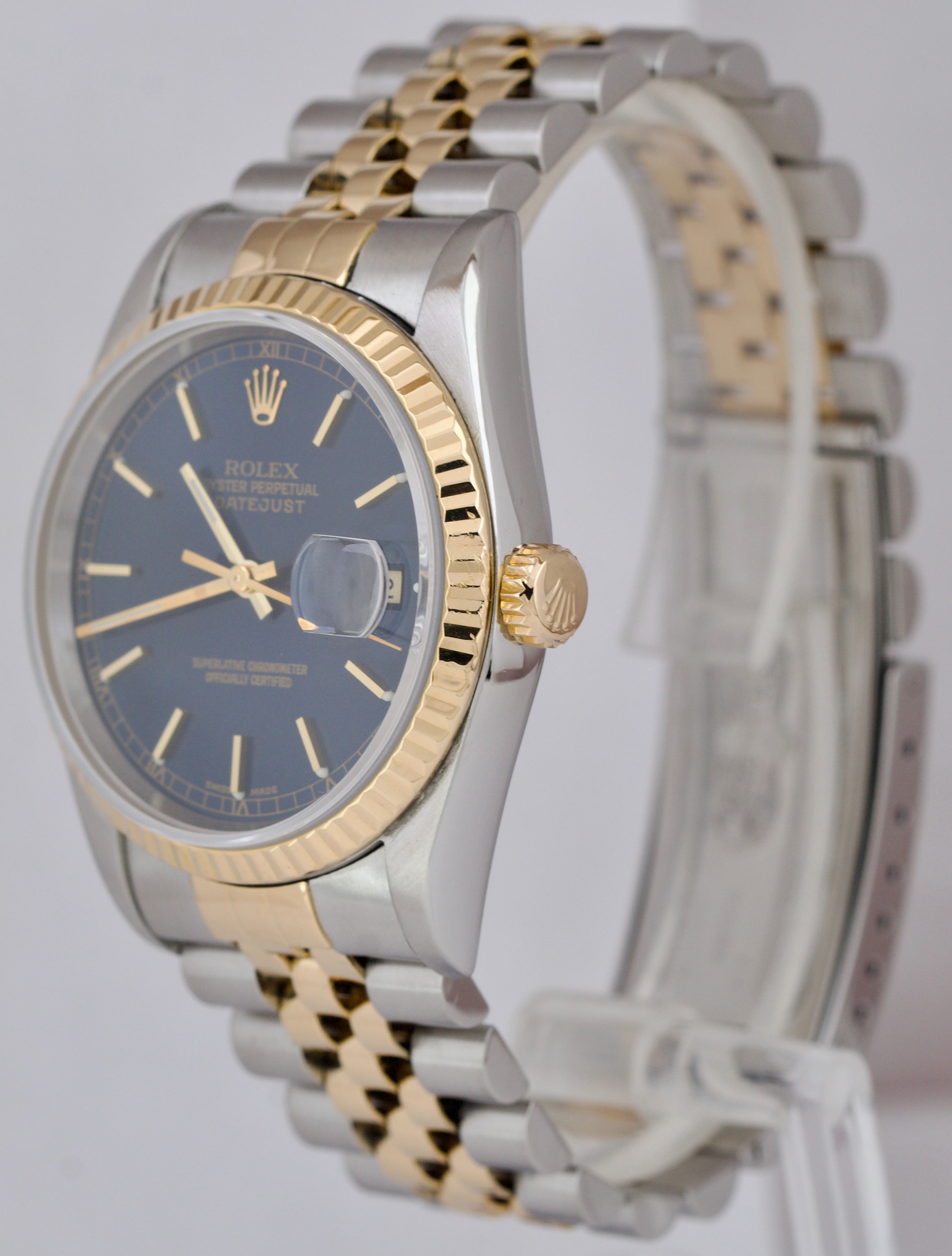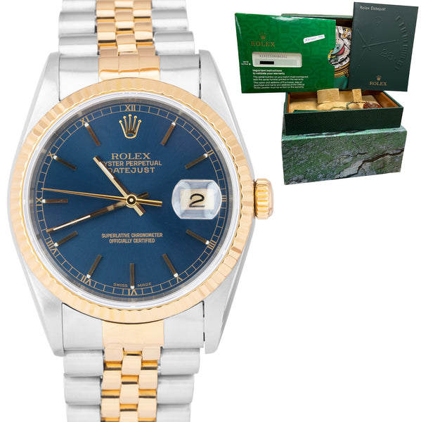 Rolex DateJust 36mm Blue Two-Tone 18K Gold NO-HOLES CASE Jubilee Watch 16233 B+P