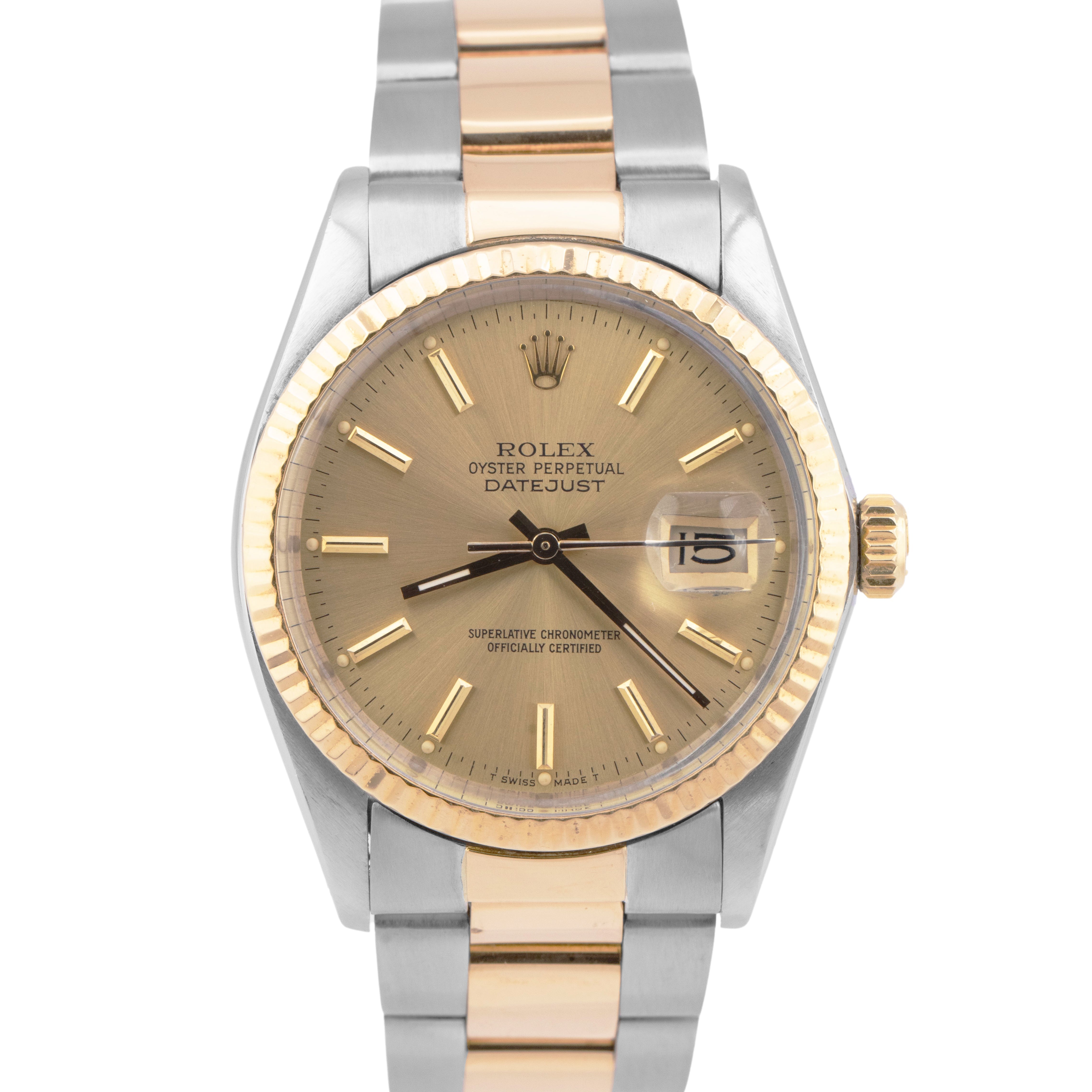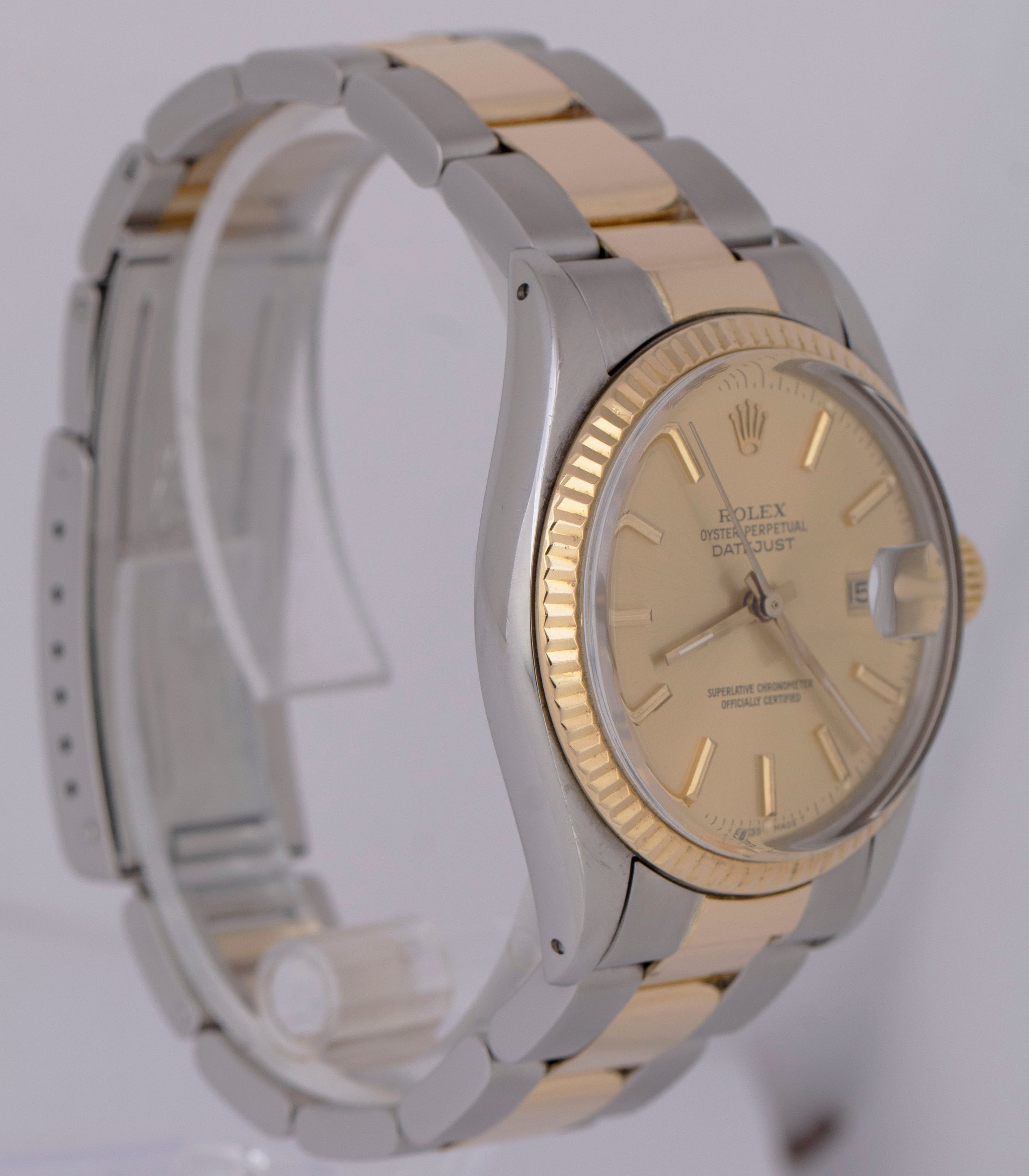 MINT Rolex DateJust 36mm CHAMPAGNE 18K Yellow Gold Stainless Steel OYSTER 16013