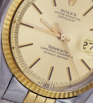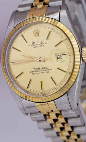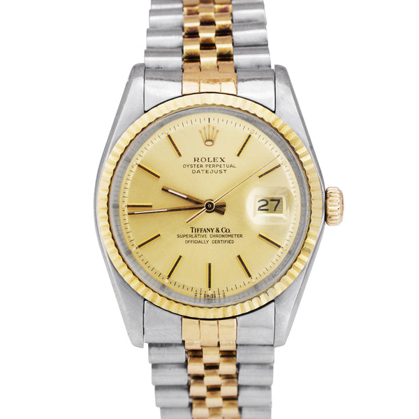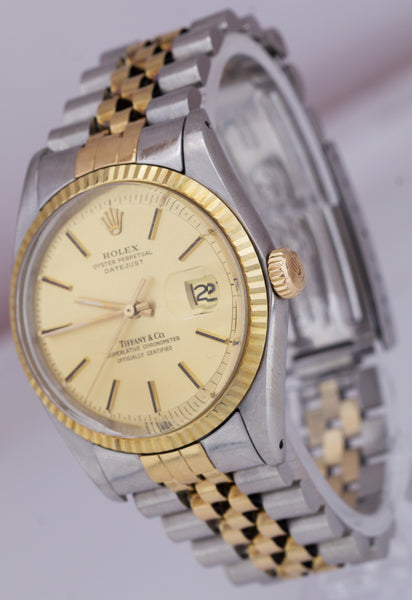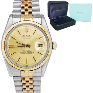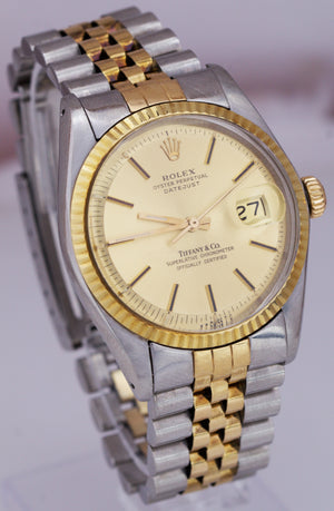 Rolex DateJust 36mm Tiffany & Co Dial Champagne Two-Tone Gold Jubilee Watch 1601