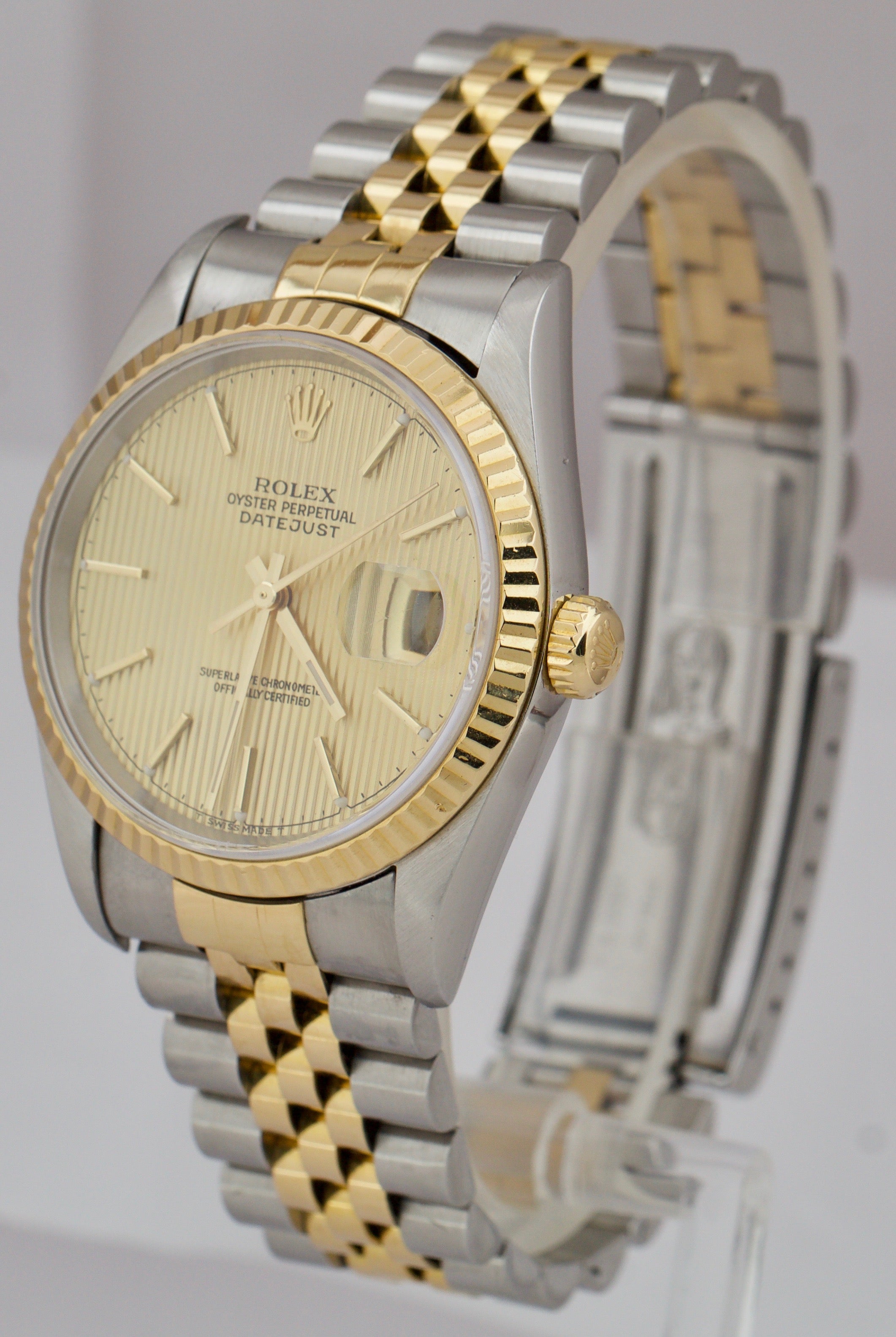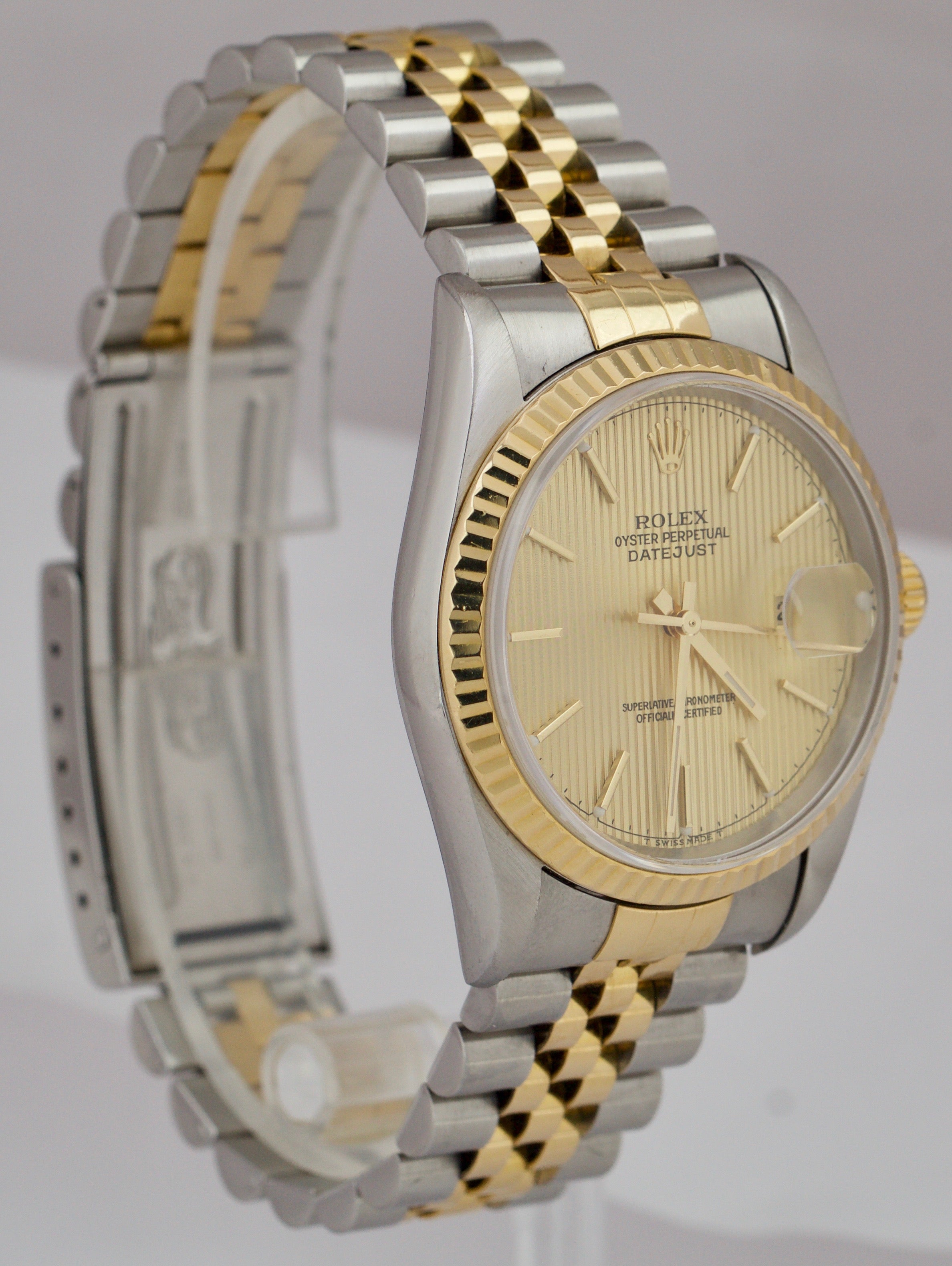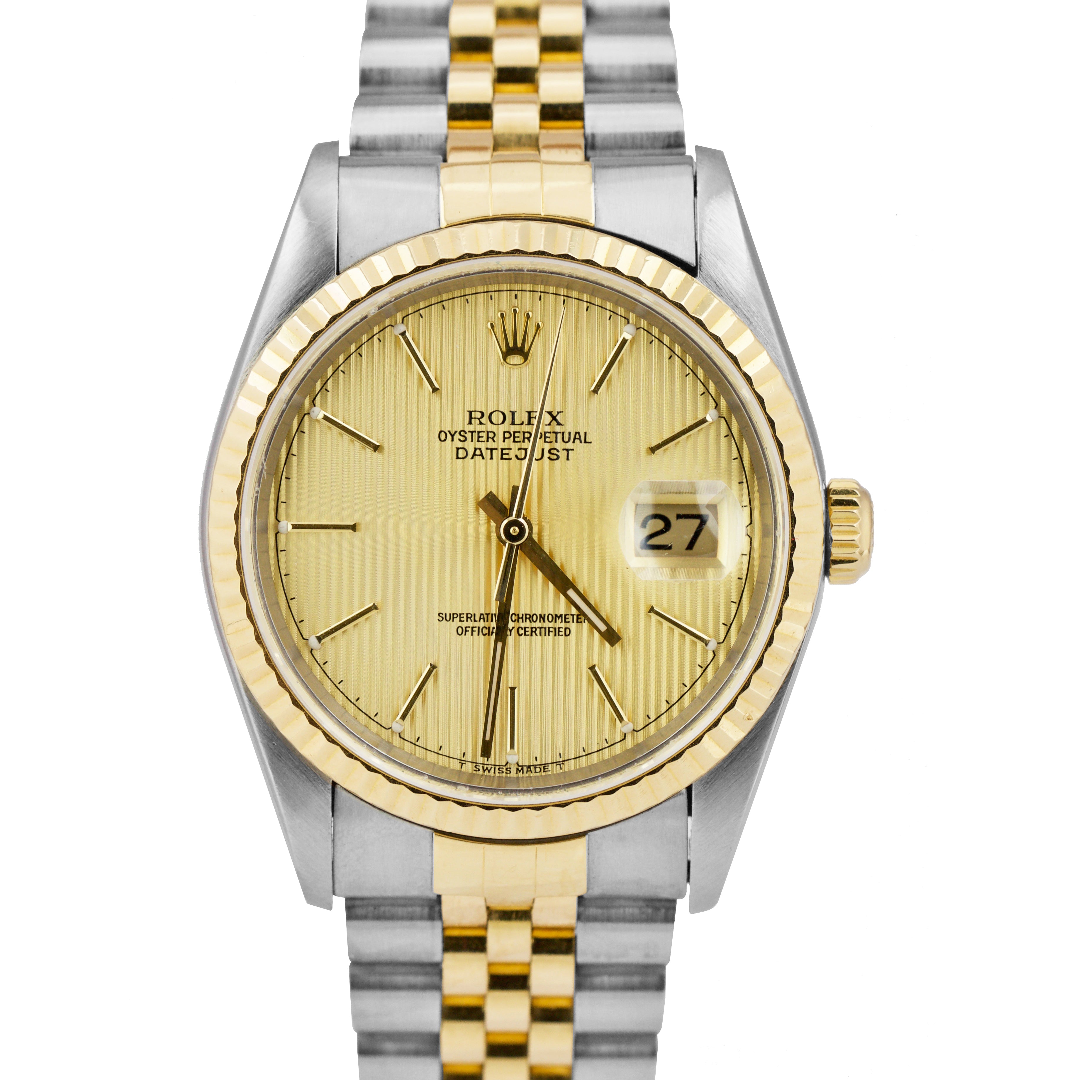 Rolex DateJust 36mm Two-Tone Champagne TAPESTRY NO HOLES Jubilee Watch 16233