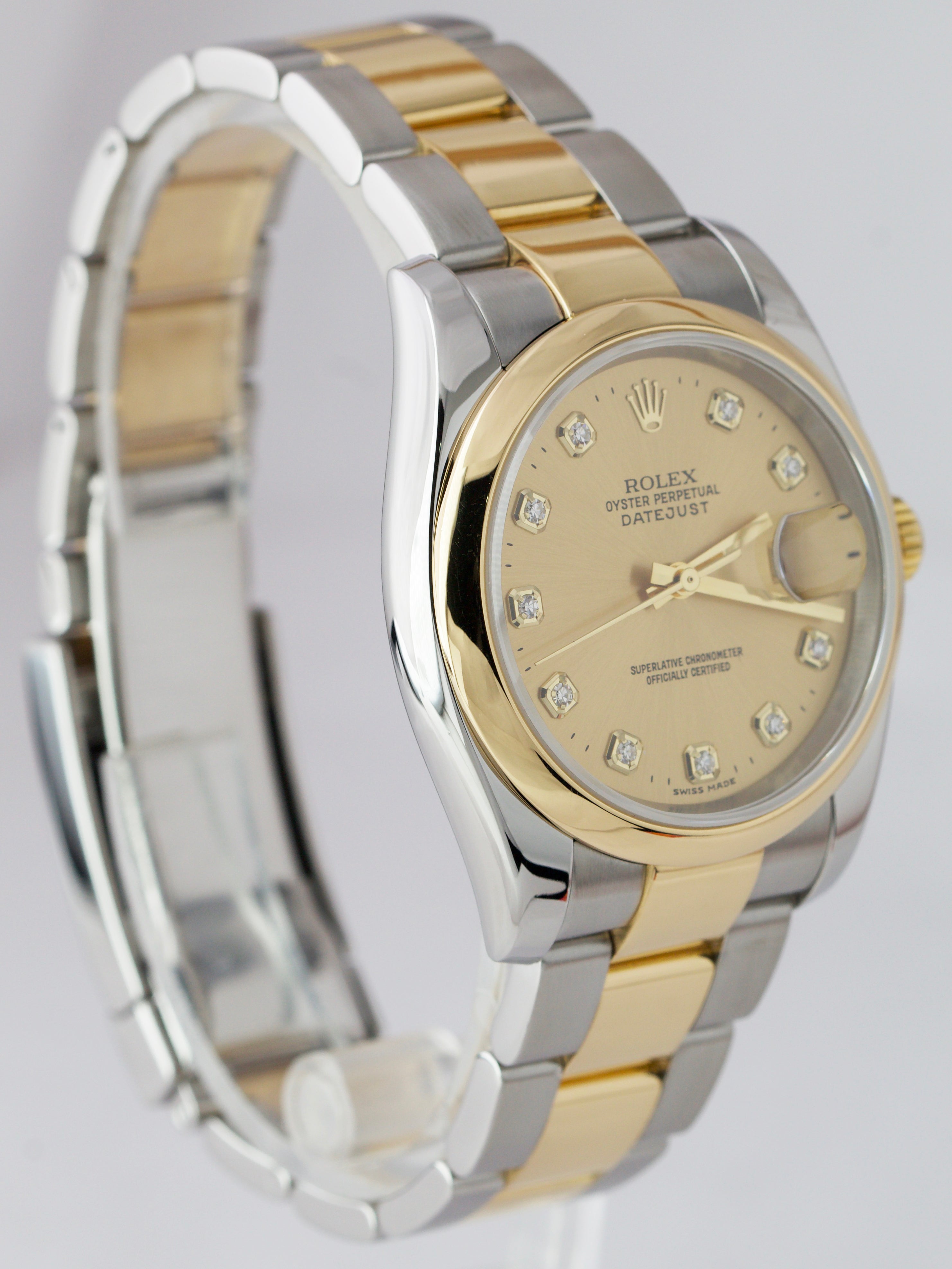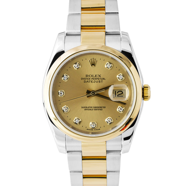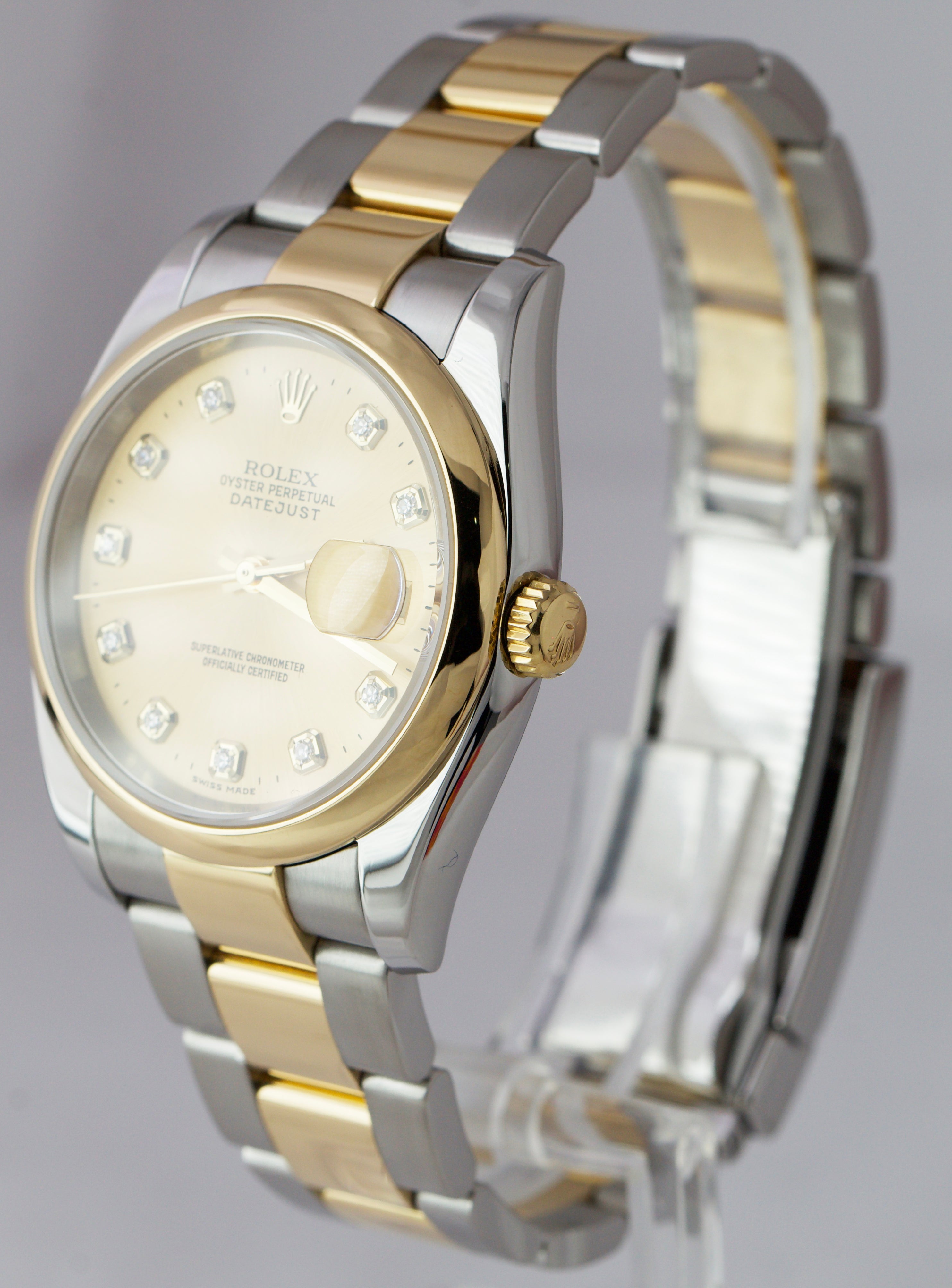 Rolex DateJust 36mm Two-Tone Gold Stainless Factory Diamond Champagne 116203