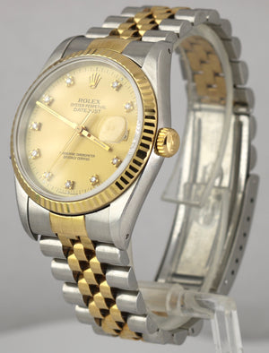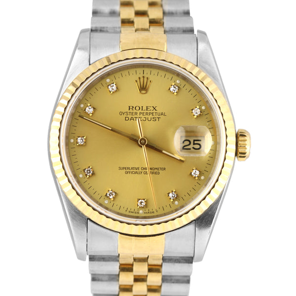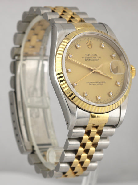 Rolex DateJust 36mm TwoTone CHAMPAGNE DIAMOND 18K Gold Steel Jubilee Watch 16233