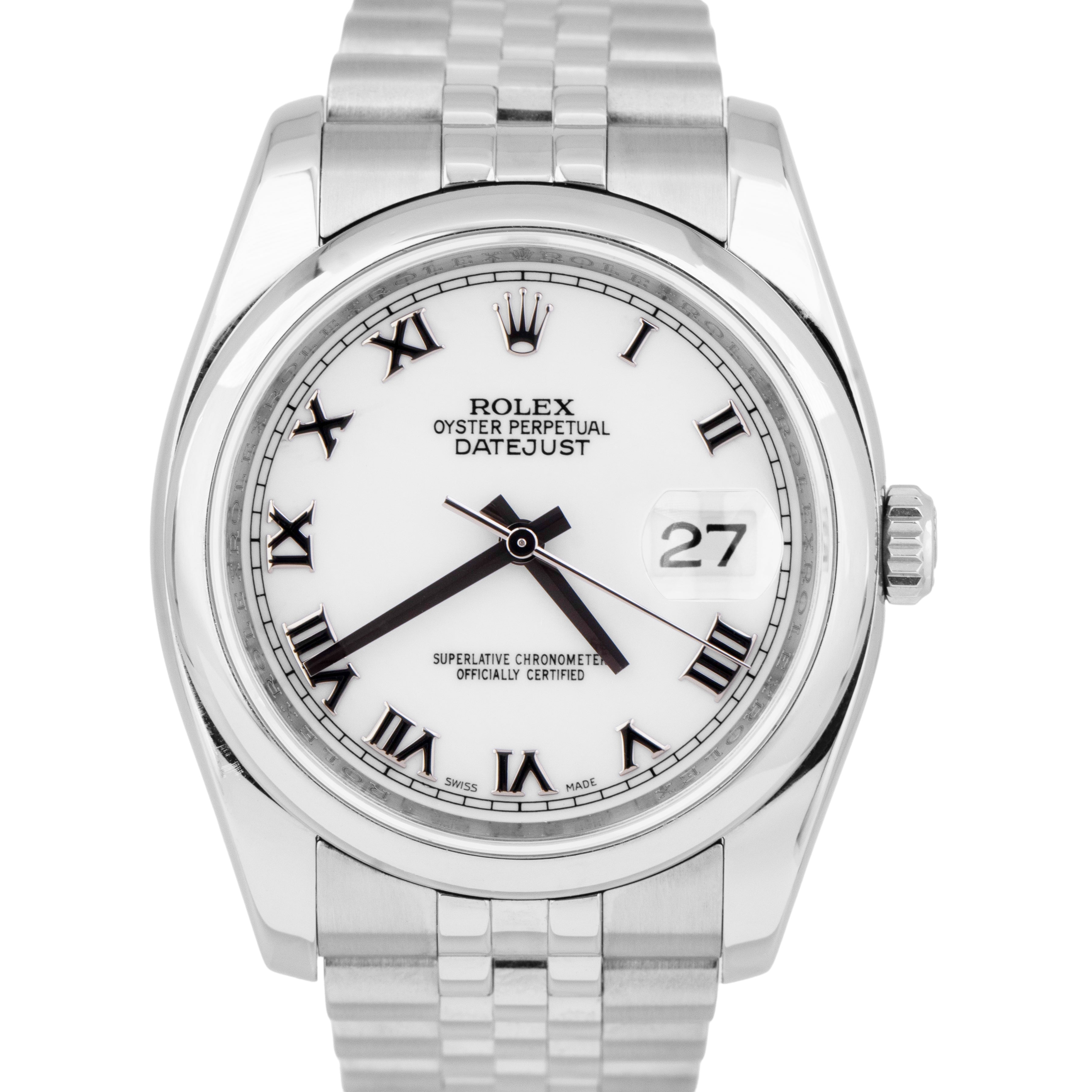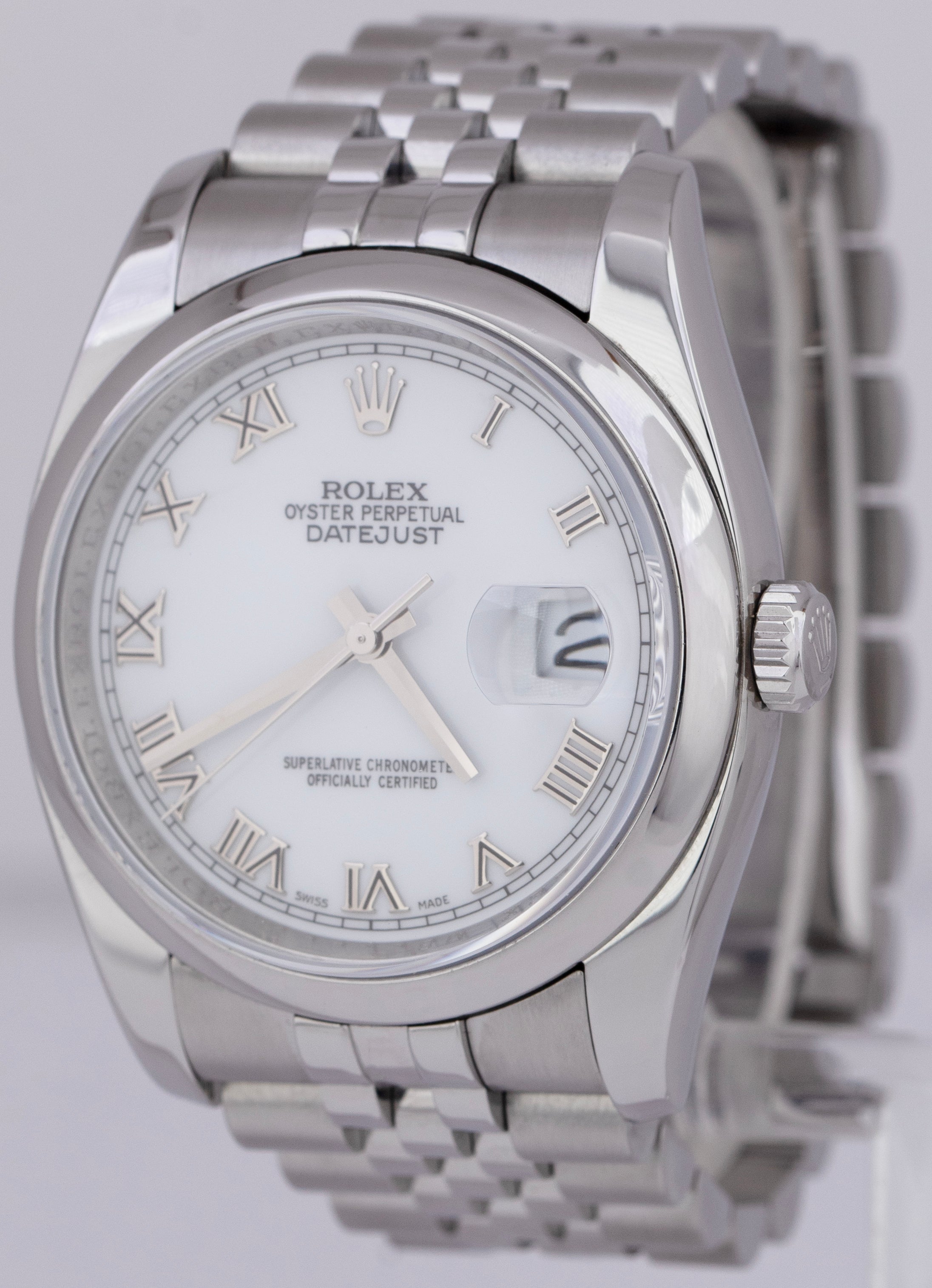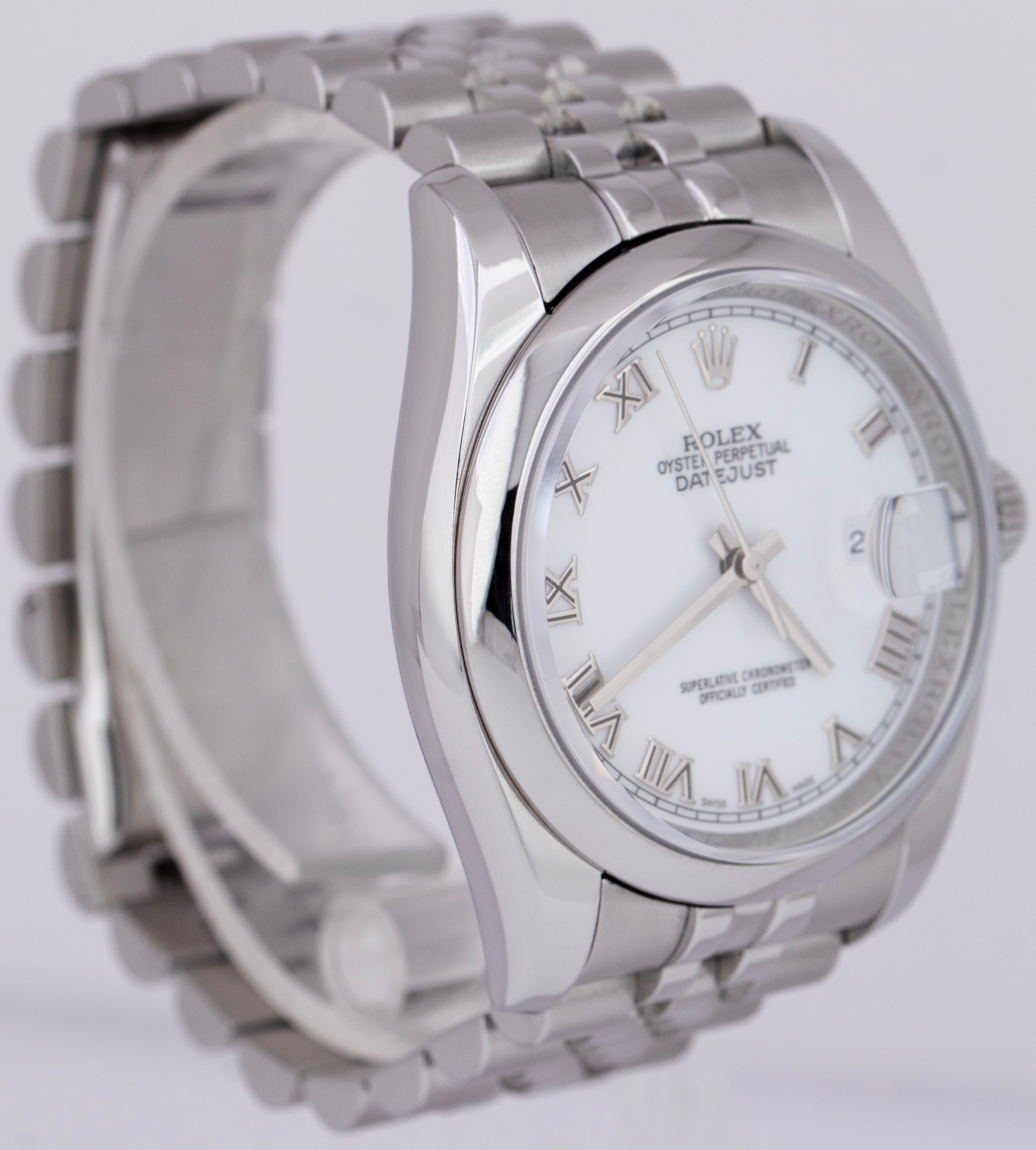 Rolex DateJust 36mm White Roman Dial Stainless Steel Jubilee Date Watch 116200