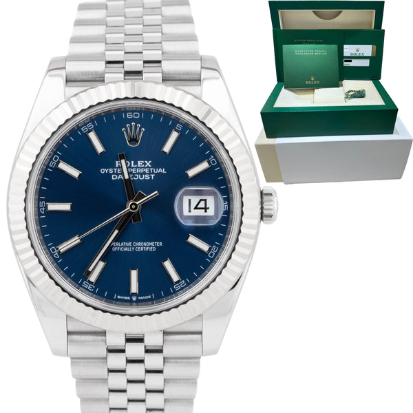 Rolex DateJust 41 Blue Fluted Stainless Steel Jubilee Watch 126334 BOX CARD
