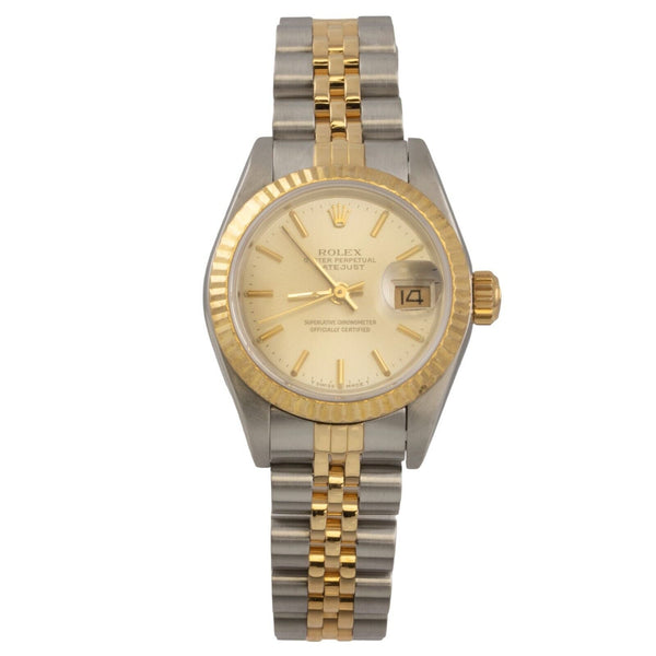 Rolex DateJust 69173 18k Yellow Gold & Stainless Silver Dial 26mm Ladies Watch