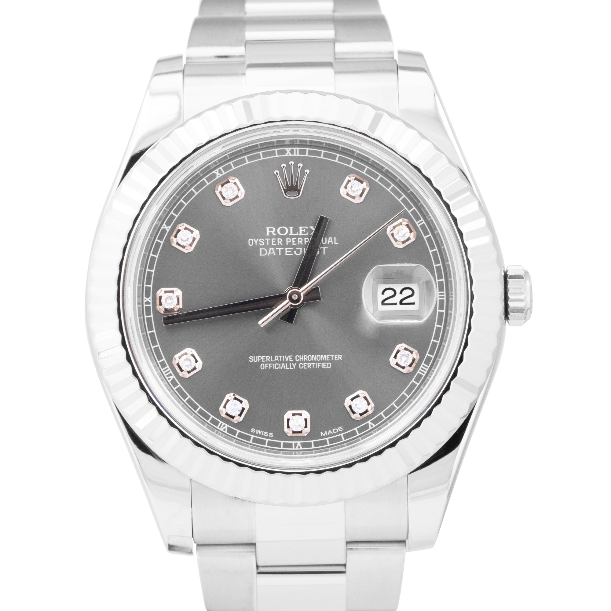 Rolex DateJust II 41mm Rhodium DIAMOND 41mm Fluted Oyster Steel Watch 116334