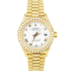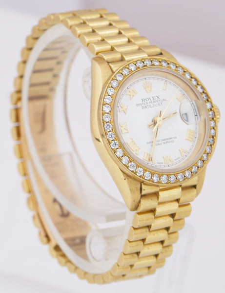 Rolex DateJust President 26mm DIAMOND BEZEL White Roman 18K Yellow Gold 69178