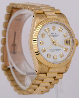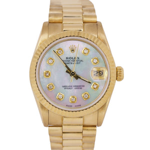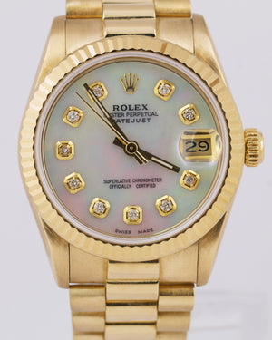 Rolex DateJust President 31mm MOTHER OF PEARL DIAMOND 18K Gold Fluted 68278