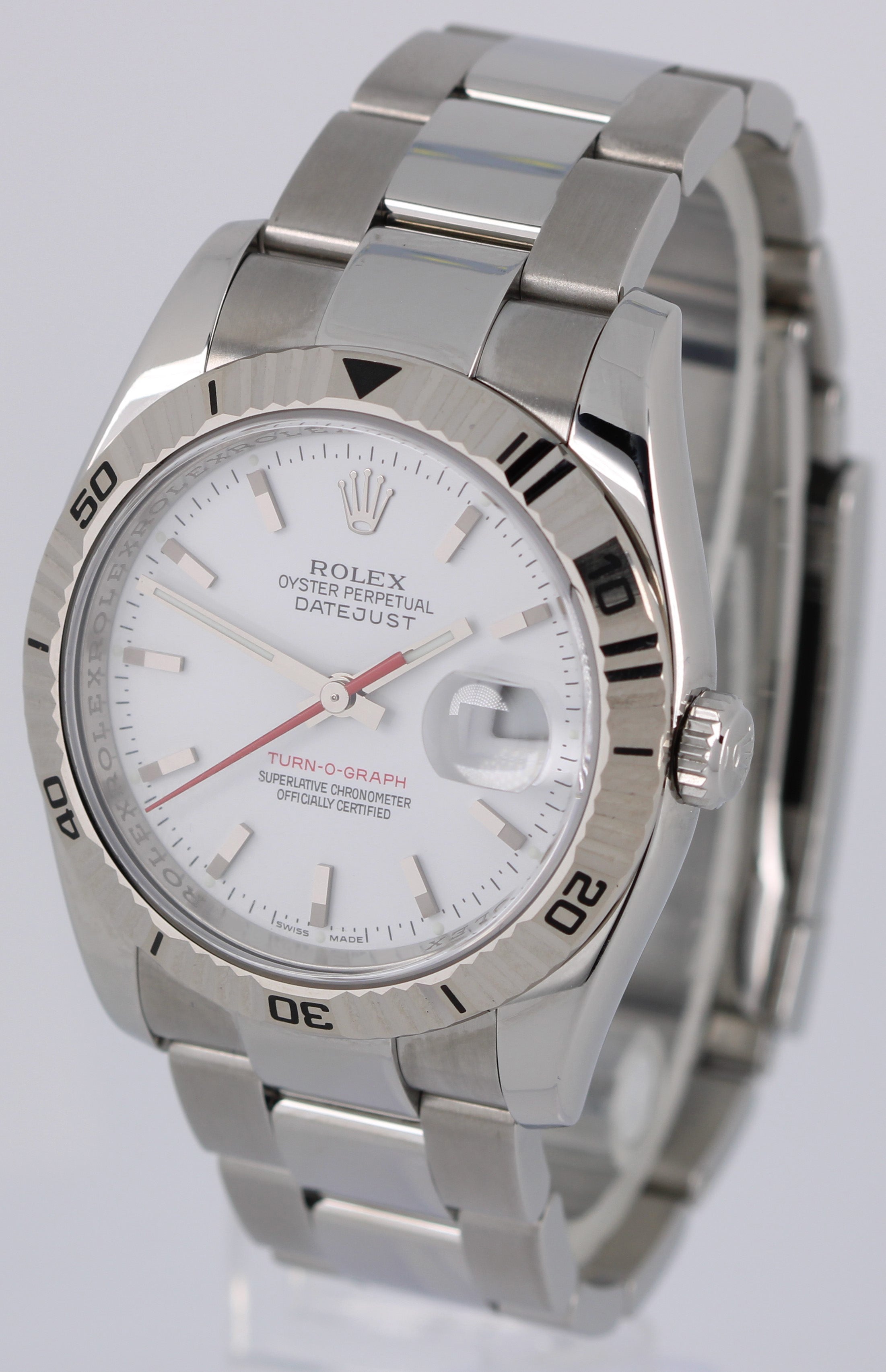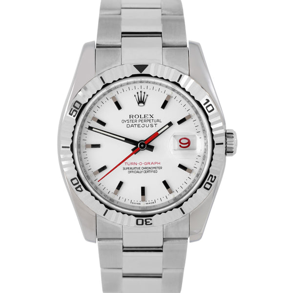 Rolex DateJust Turn-O-Graph Thunderbird Steel White Red 36mm Fluted 116264 Watch