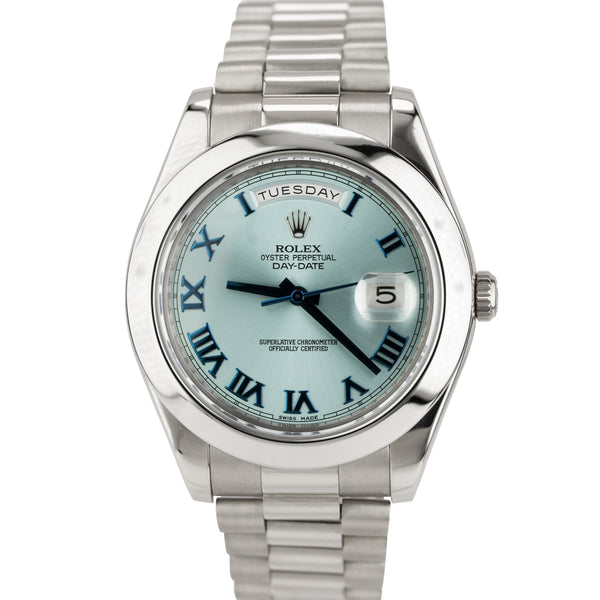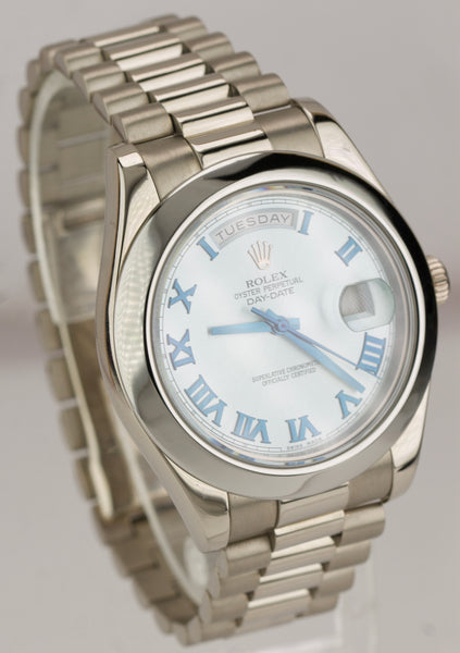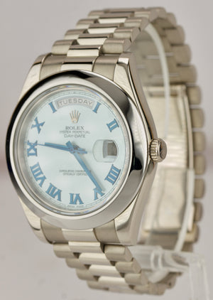Rolex Day-Date II 41mm Glacier Blue Roman President 218206 18K White Gold 218239