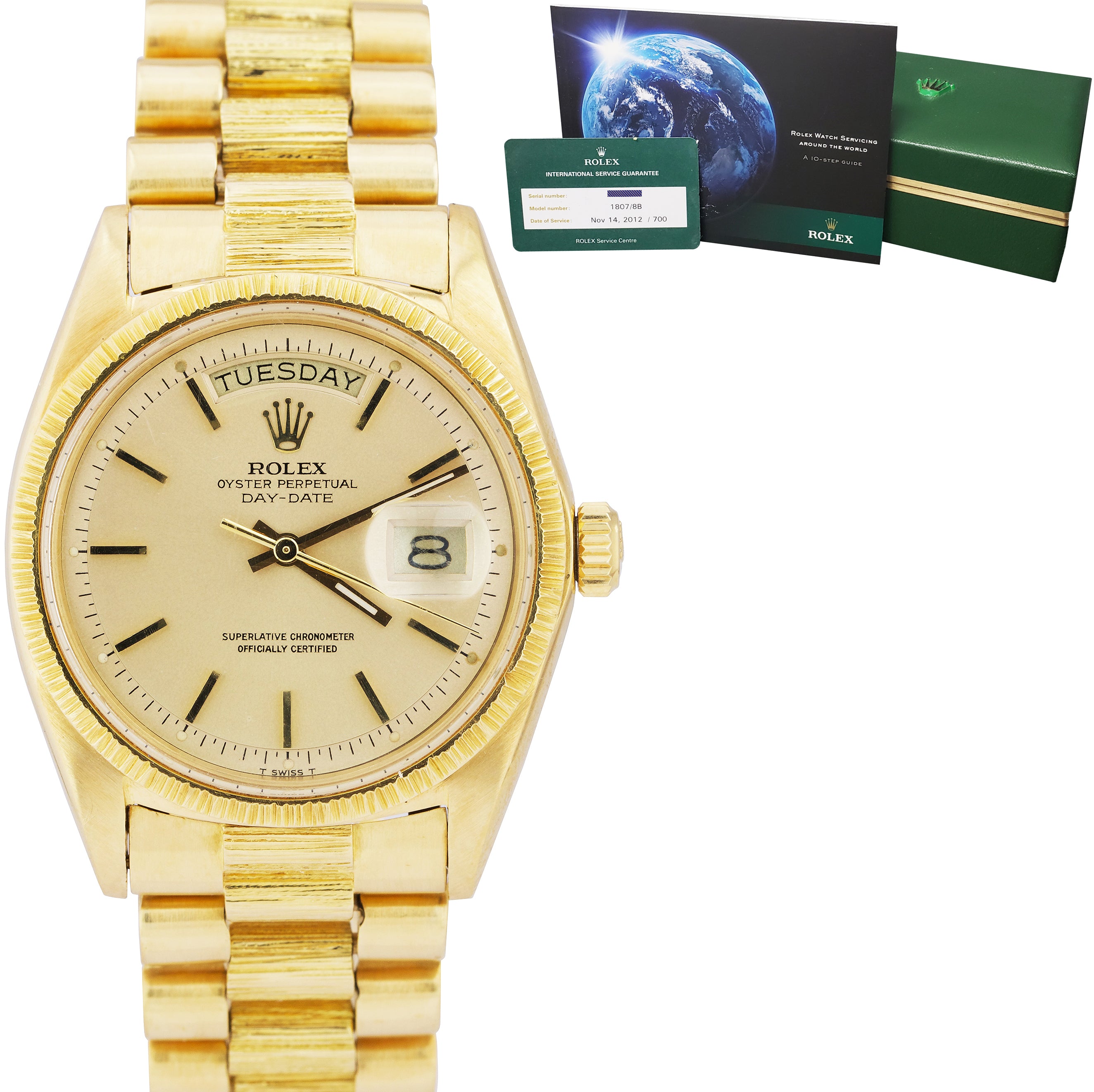 Rolex Day-Date President 1807 Champagne Bark 18K Yellow Gold 36mm Watch 1803