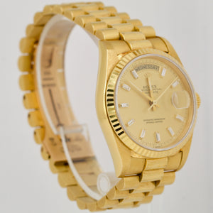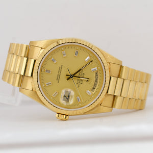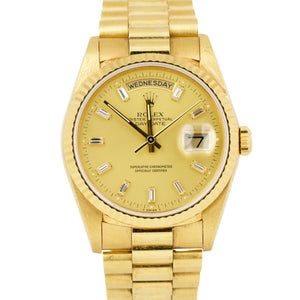 Rolex Day-Date President 36mm FACTORY DIAMOND BAGUETTE 18K Gold Fluted 18238