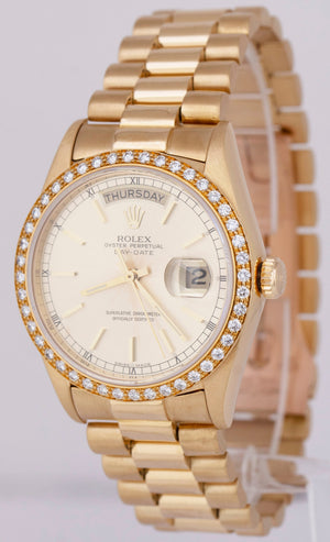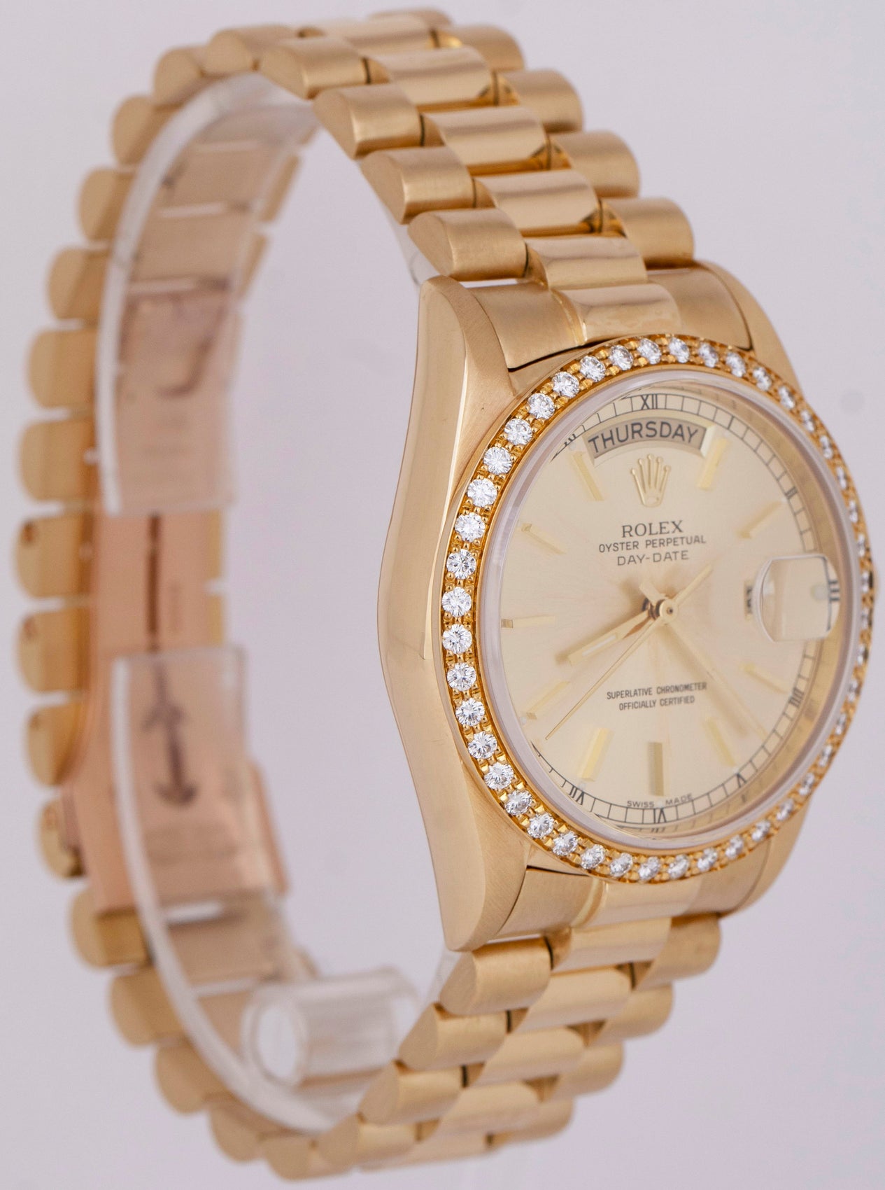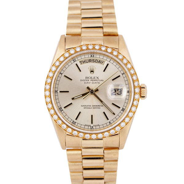 Rolex Day-Date President 36mm Silver FACTORY DIAMOND 18K Yellow Gold Watch 18048