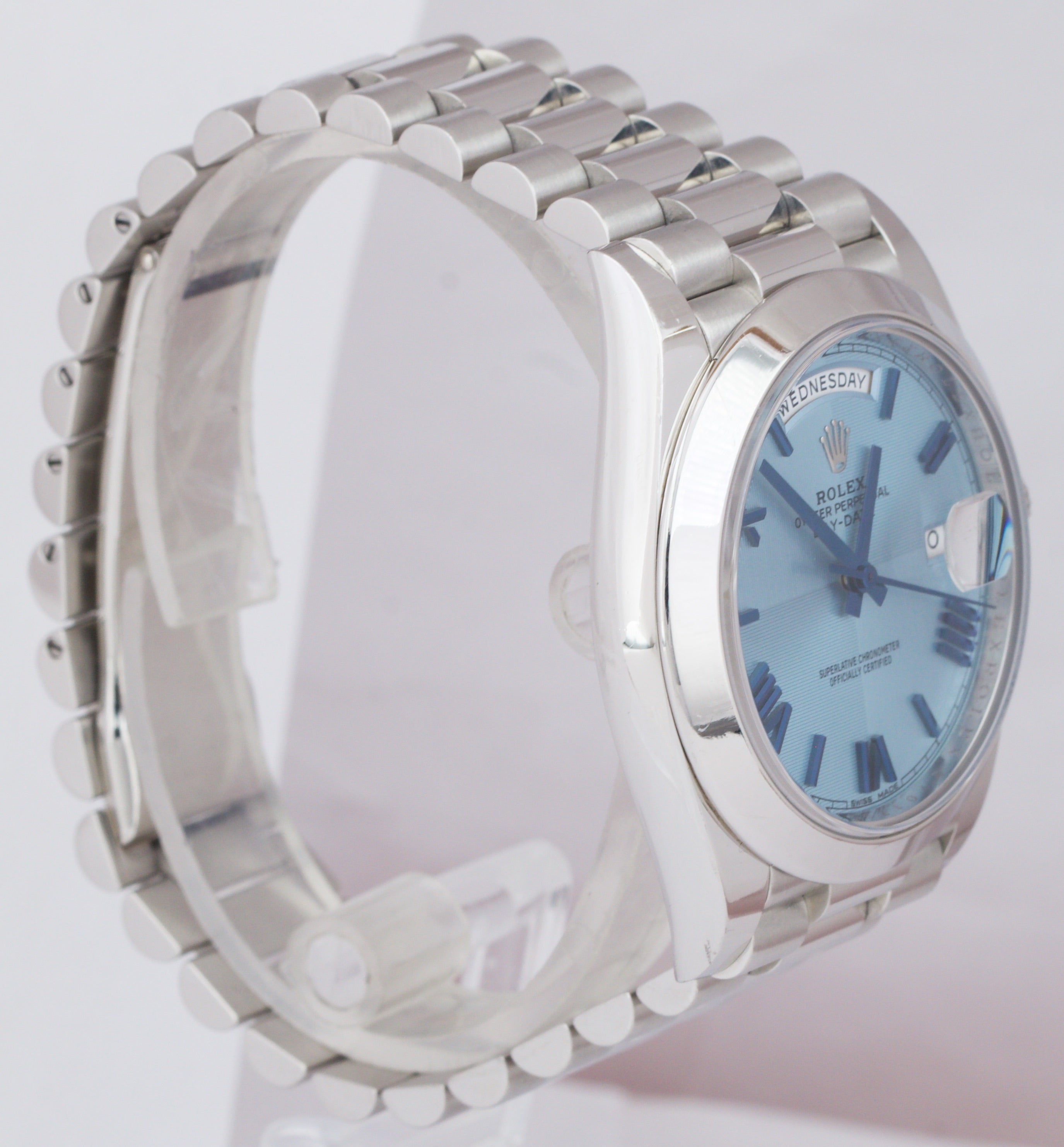 Rolex Day-Date President 40mm Platinum Blue Glacier Quadrant Roman 228206 B+P
