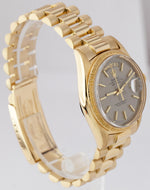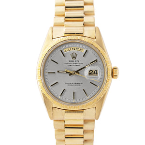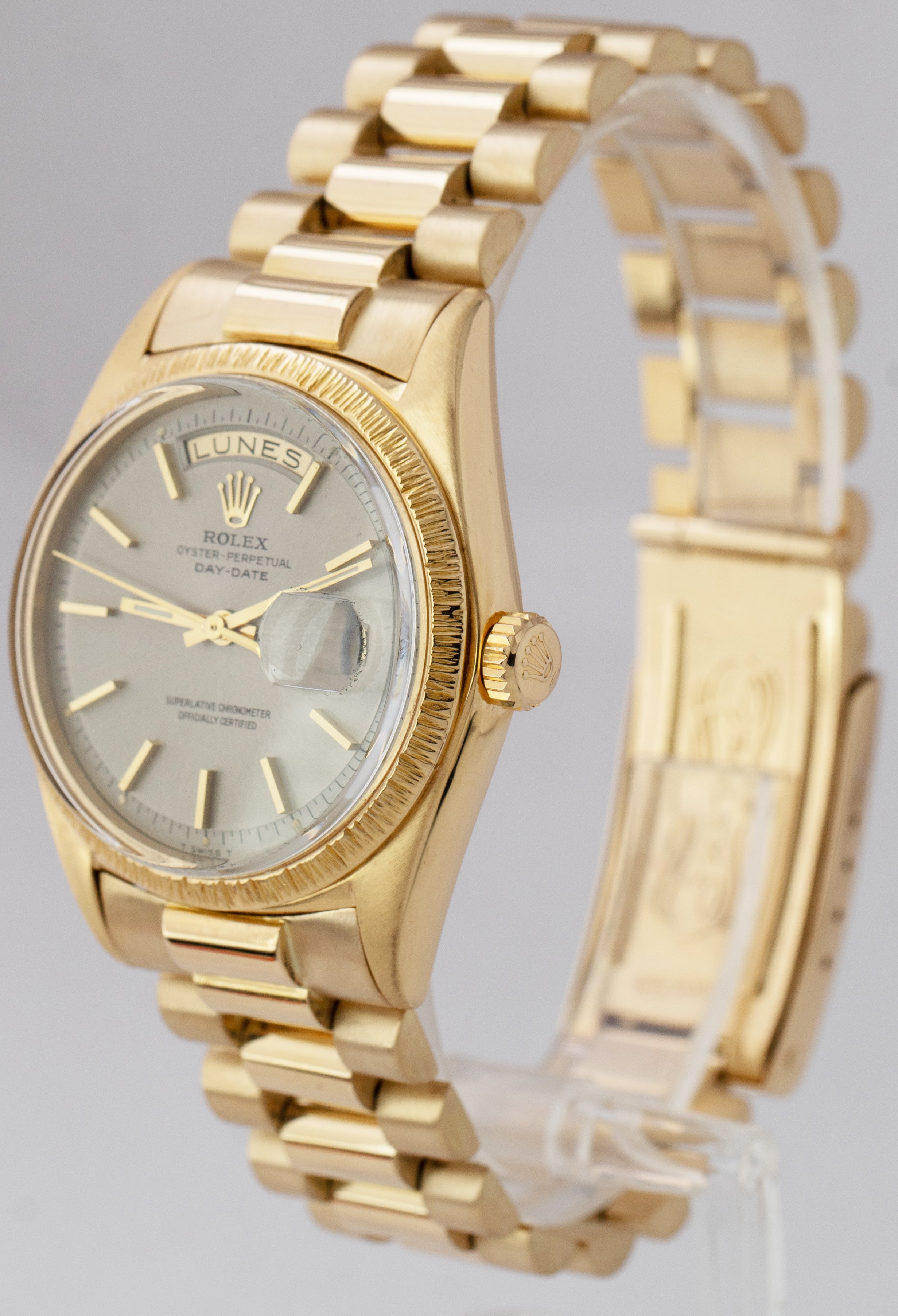 Rolex Day-Date President Gray Silver Pie Pan 18K Yellow Gold 36mm Watch 1807