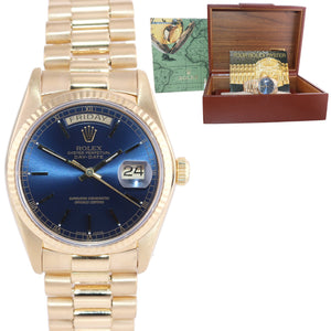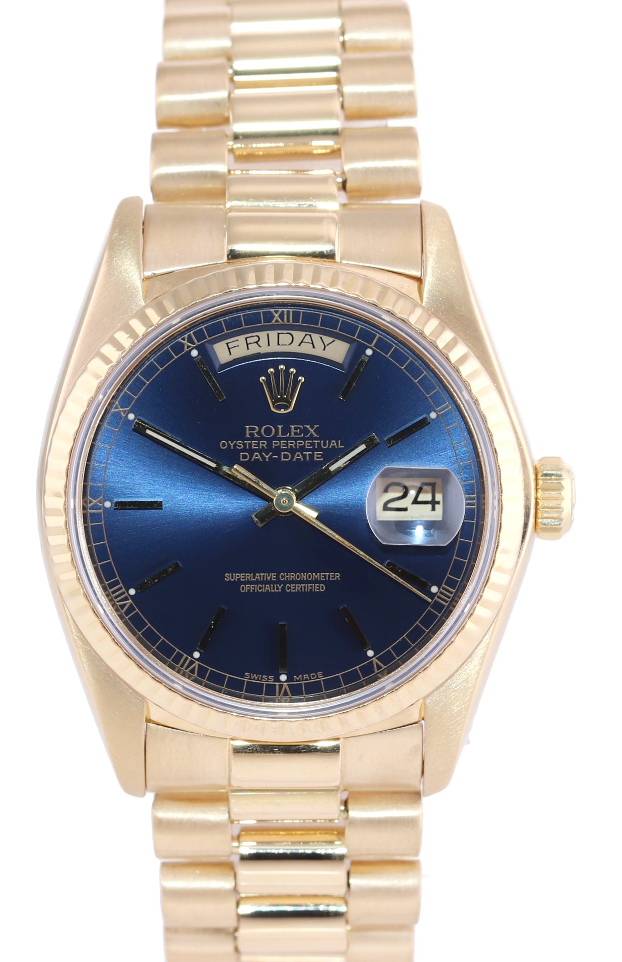 | Dial | Rolex Blue Dial with the day at the 12 o'clock and the date at the 3 o'clock |