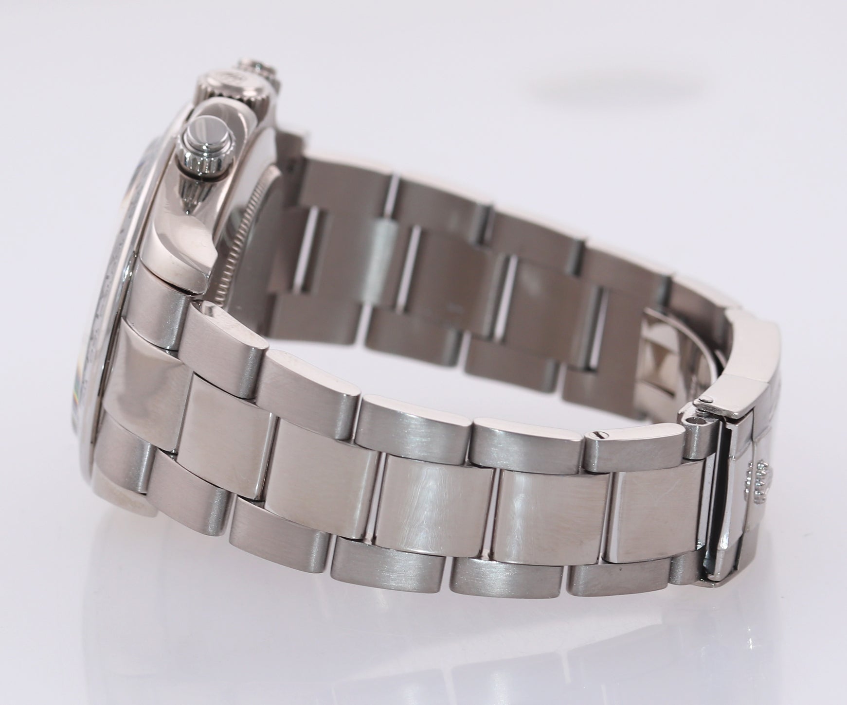 | Band | Original Rolex White Gold Oyster Bracelet with an 18K White Gold Flip Lock Deployment Clasp. |