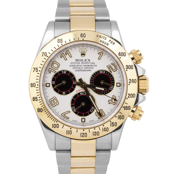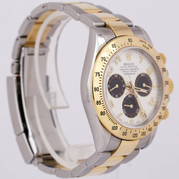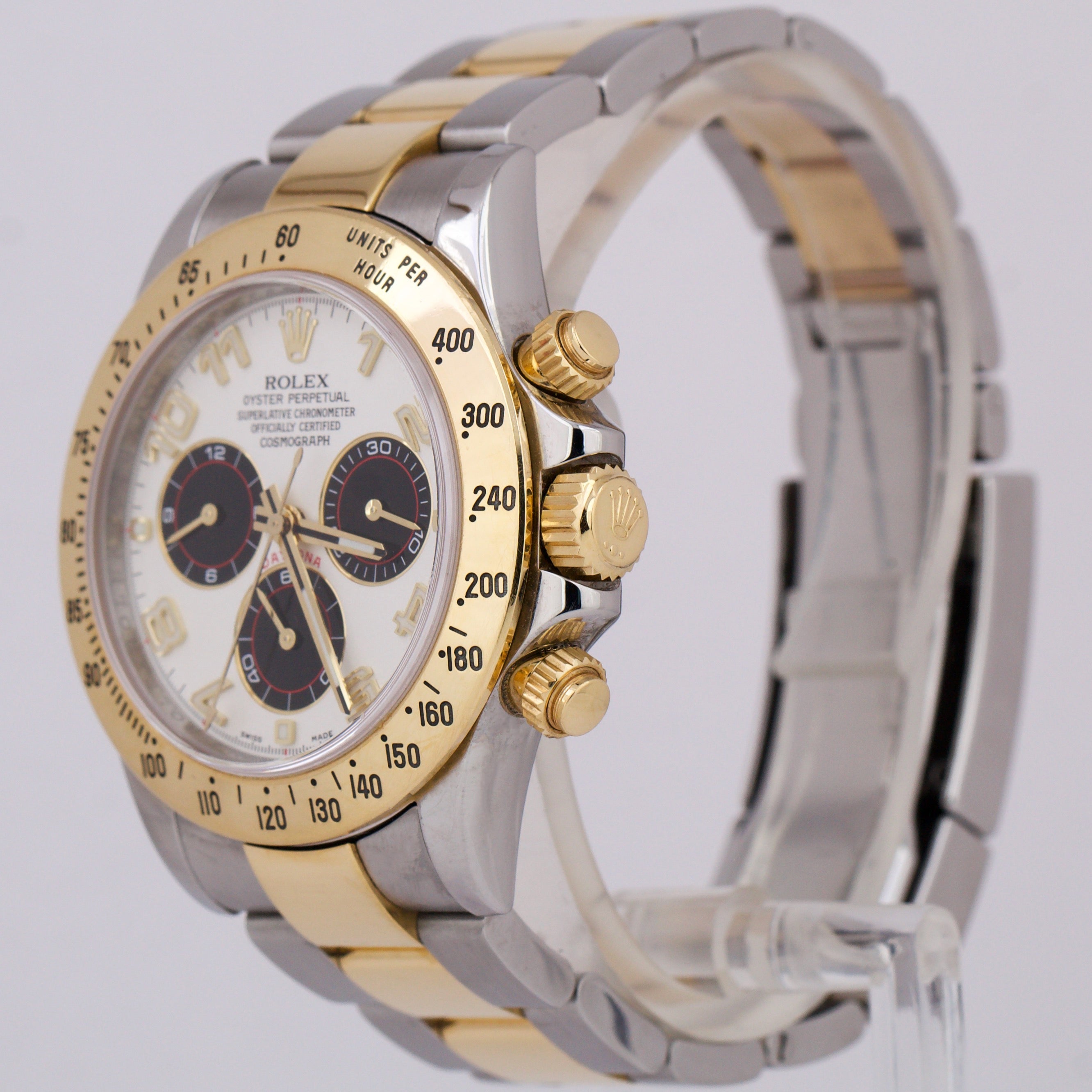 Rolex Daytona Cosmograph 40mm IVORY PANDA RACING 18K Gold Steel Watch 116523 BOX
