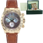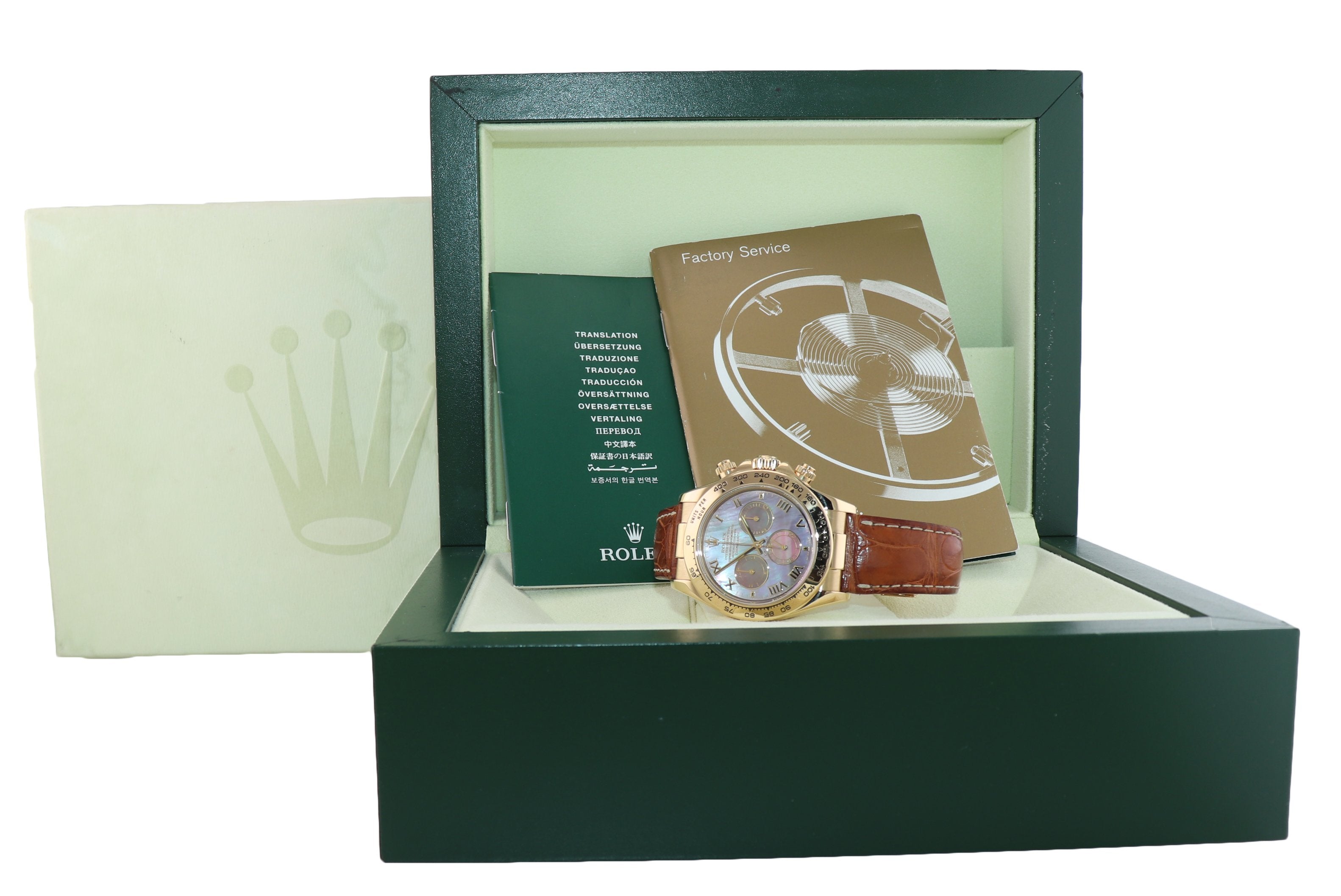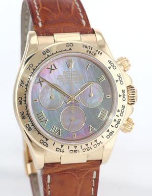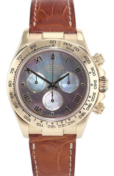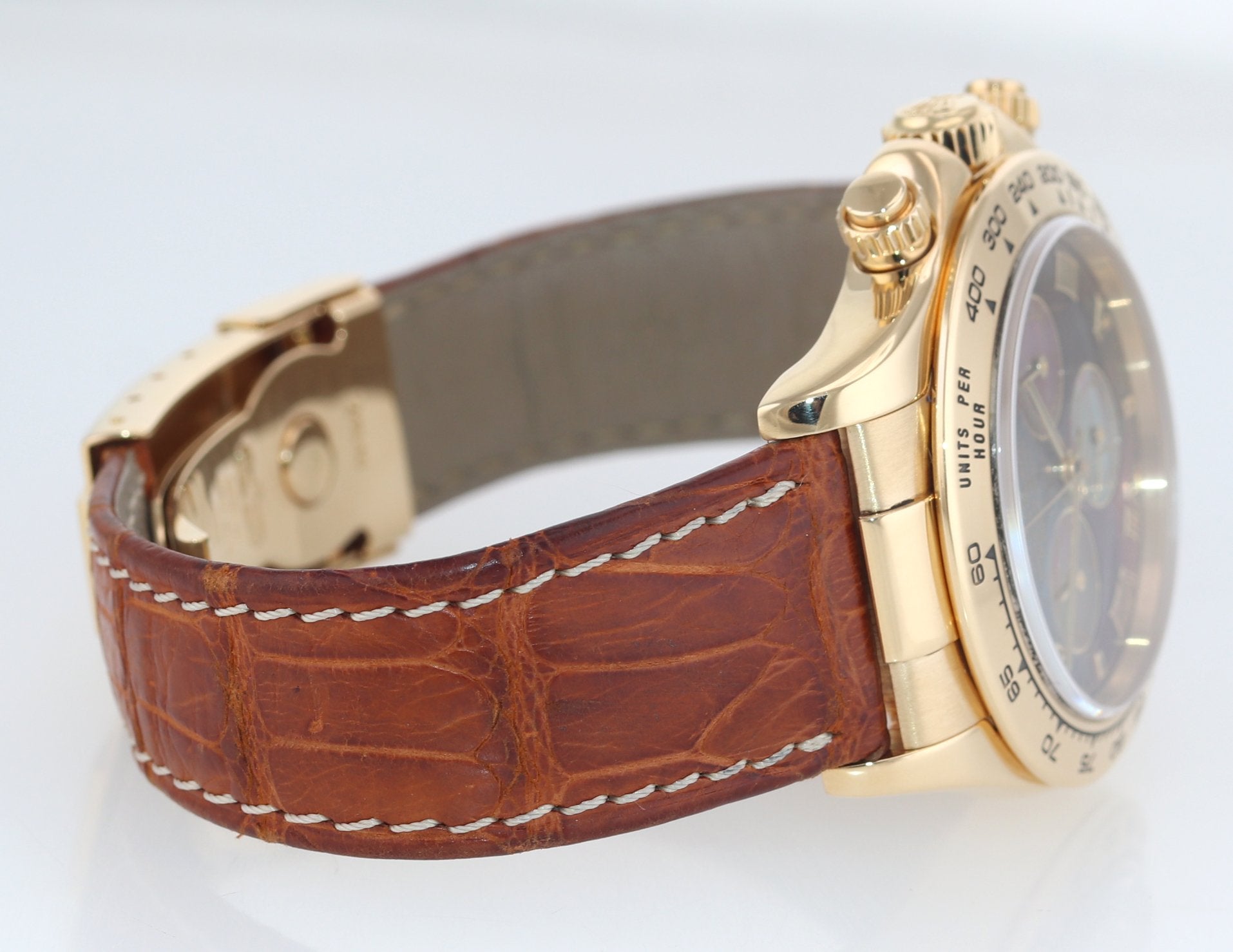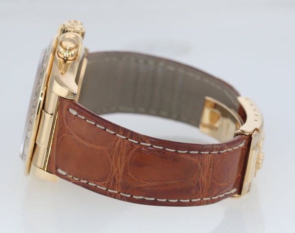| Band | Genuine Brown Alligator Leather Band with its 18K Yellow Gold Flip Lock Deployment Clasp. |