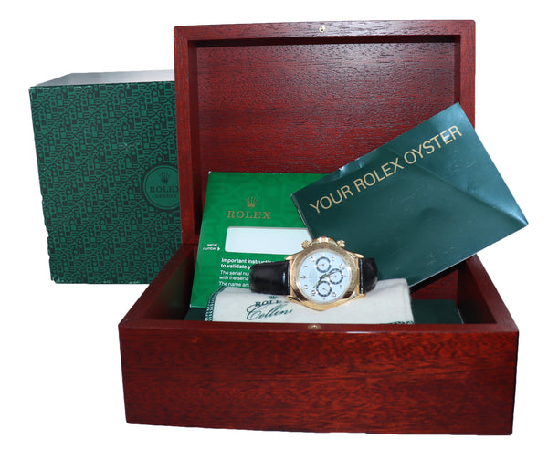 Rolex Daytona Zenith 16518 White Dial 18k Yellow Gold 40mm Leather Watch Box