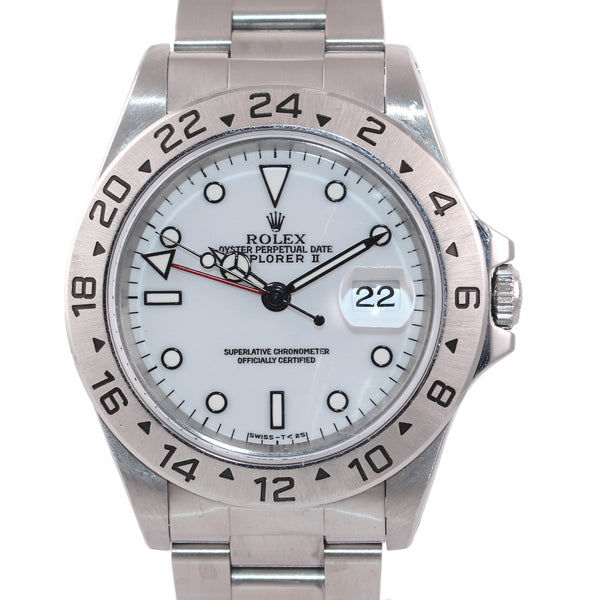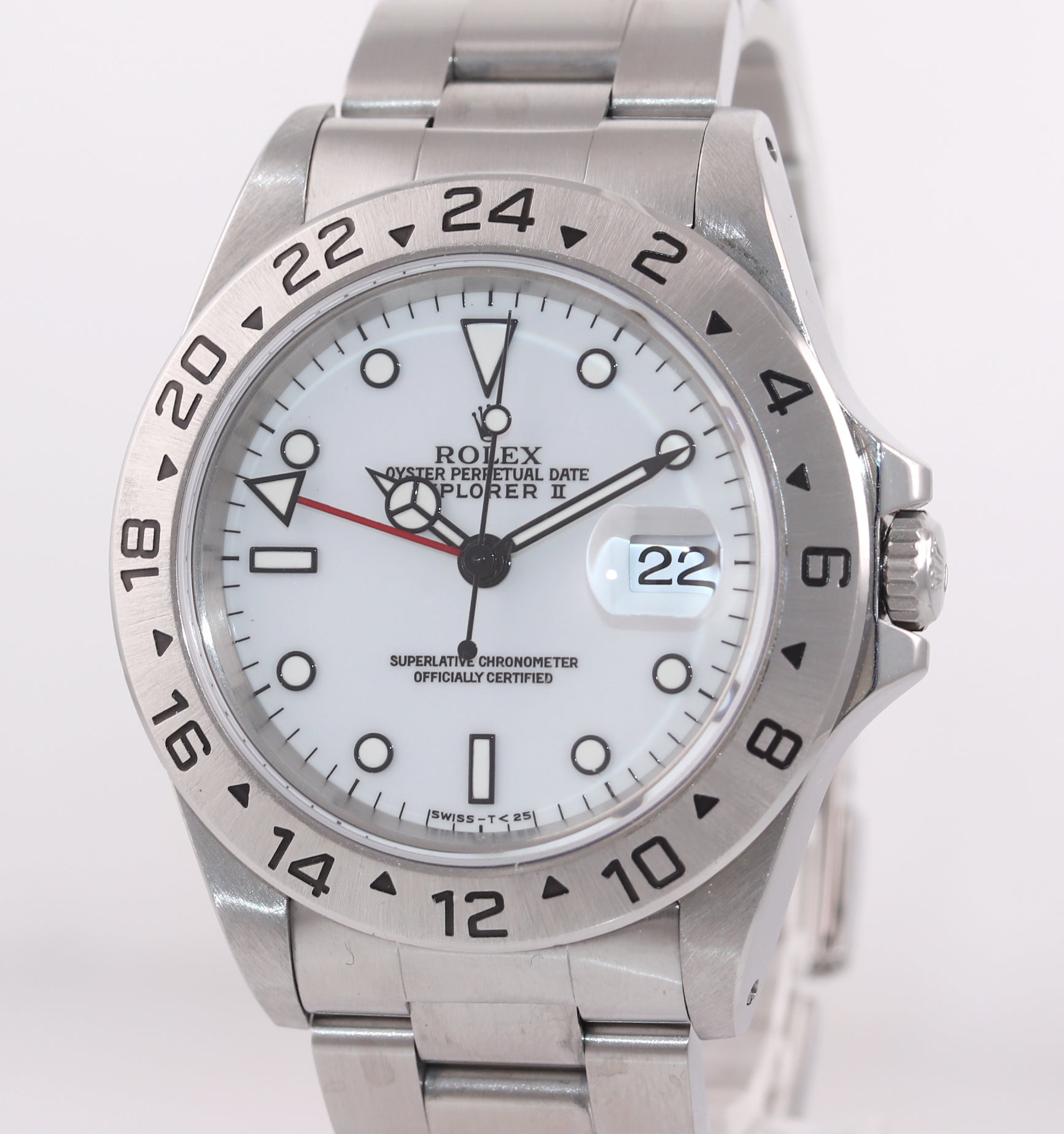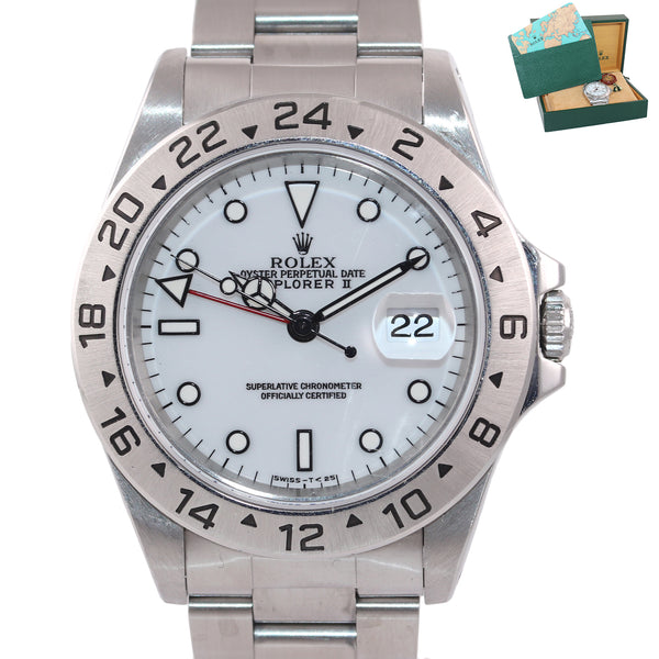 Rolex Explorer II 16570 Steel White Dial Polar GMT Date TRITIUM 40mm Watch