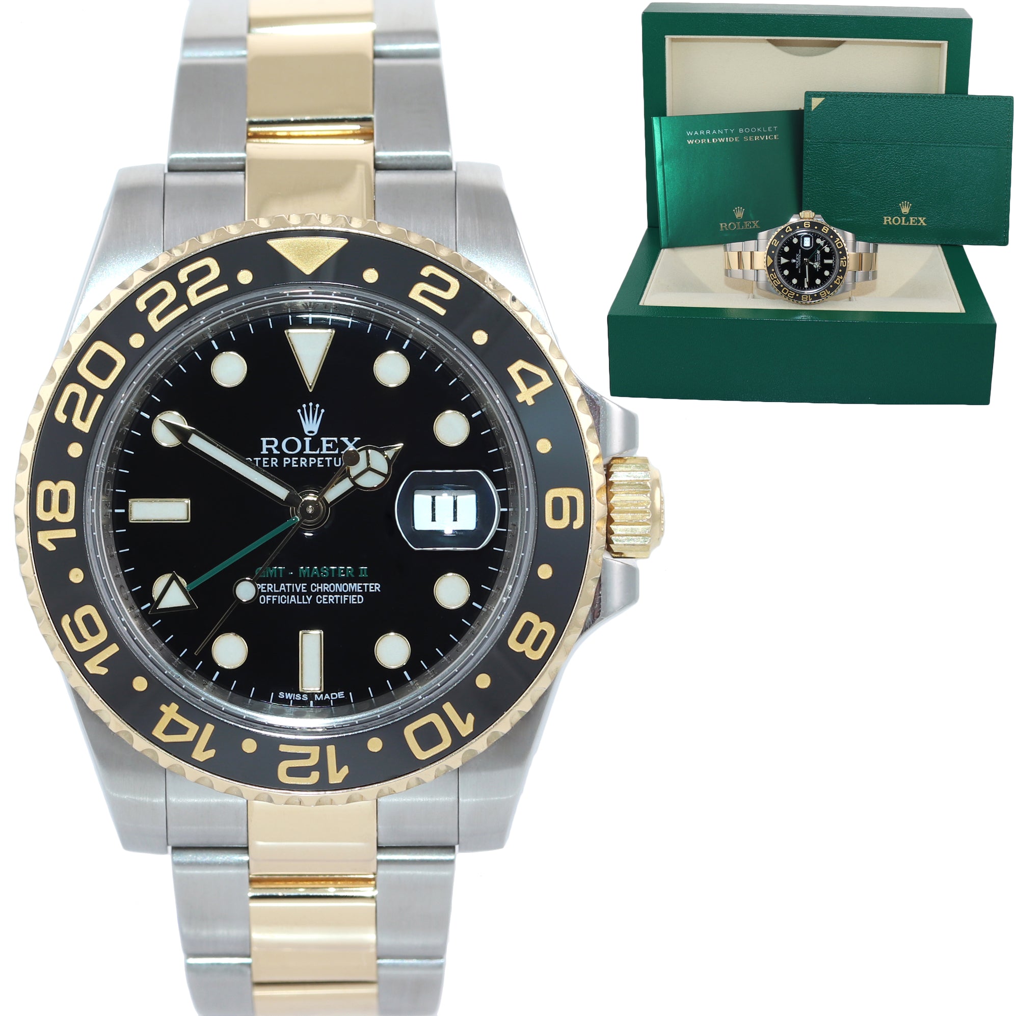 Rolex GMT-Master 2 Ceramic 116713 Black Green Two Tone Steel Gold Watch