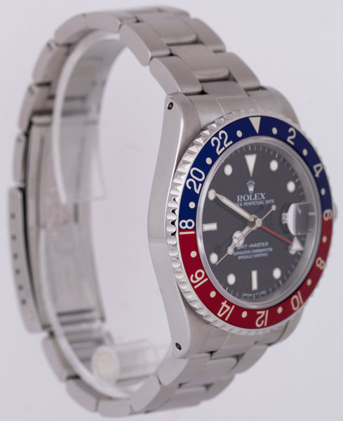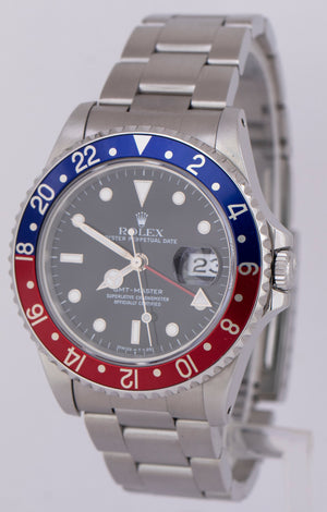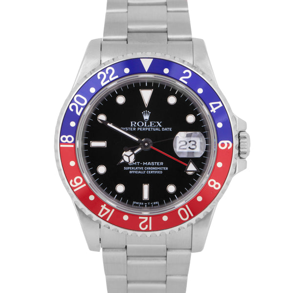 Rolex GMT-Master 40mm PEPSI Black Stainless Steel Blue Red Date Watch 16700