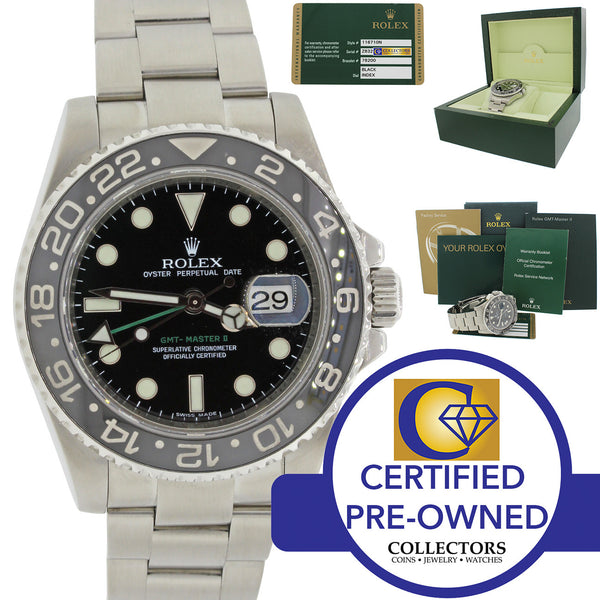 MINT 2011 PAPERS Rolex GMT Master II 116710 Steel Ceramic 40mm Black Watch Box