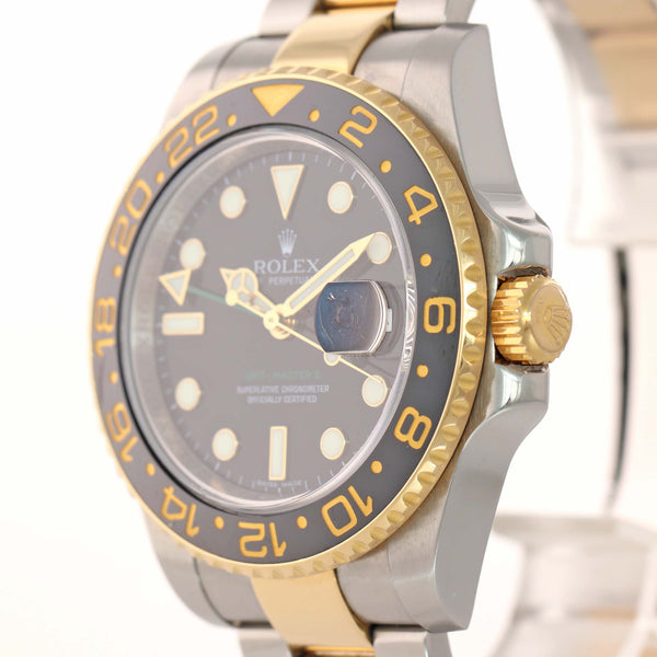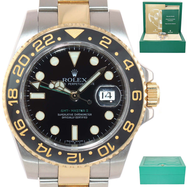 MINT Rolex GMT-Master II Ceramic 116713 Black Green Two Tone Steel Gold Watch Box