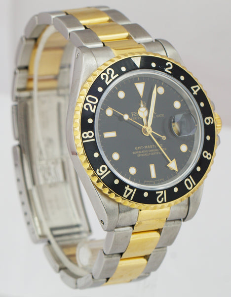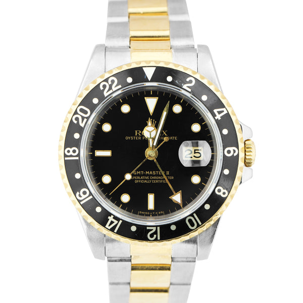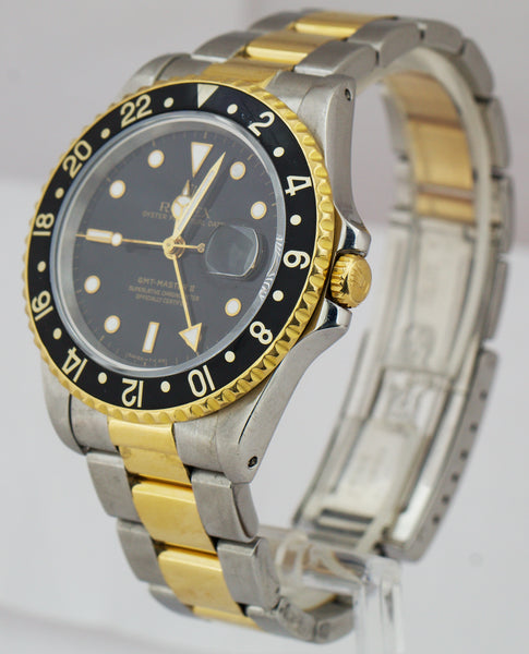 Rolex GMT-Master II Two-Tone Stainless Steel Gold Black Oyster 40mm Watch 16713N