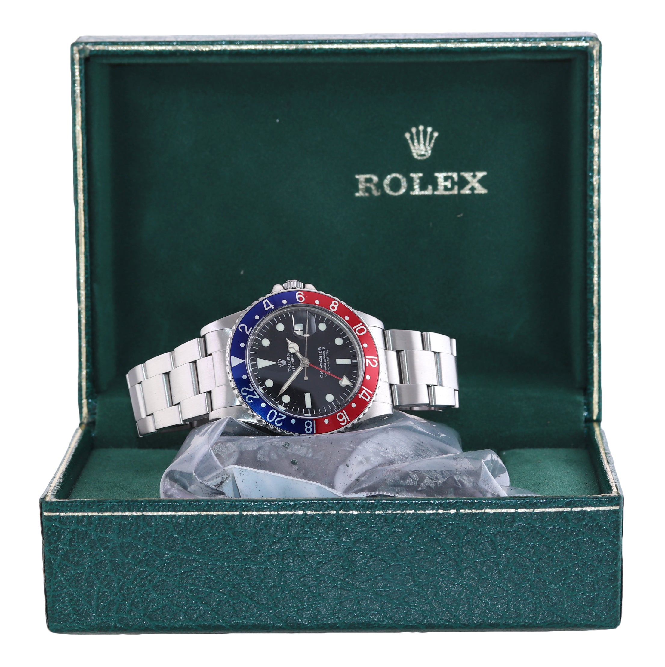 | Dial | custom Black Matte Dial with the date at the 3 o'clock and a Red 24-hour GMT hand. |