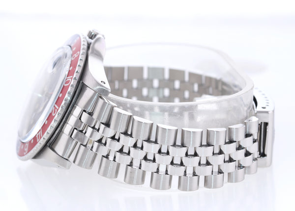 | Dial | Rolex Black Matte Dial with the date at the 3 o'clock and a Red 24-hour GMT hand. |