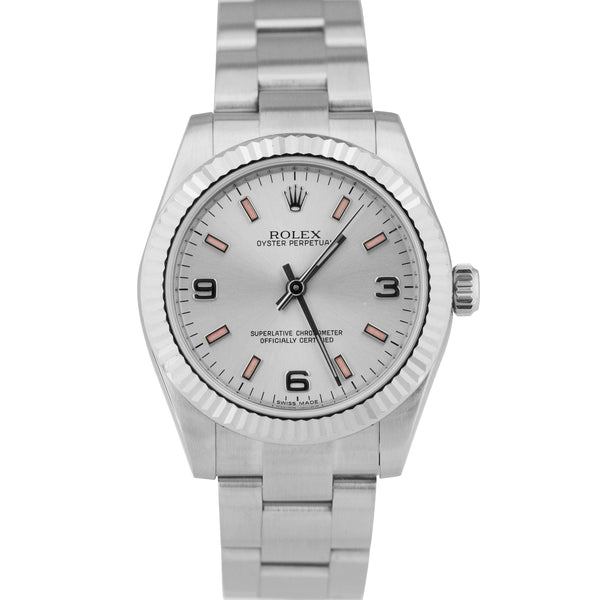 Rolex Oyster Perpetual 31 Silver Pink 31mm Mid-Size Oyster Fluted 177234 Watch