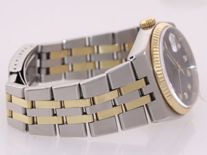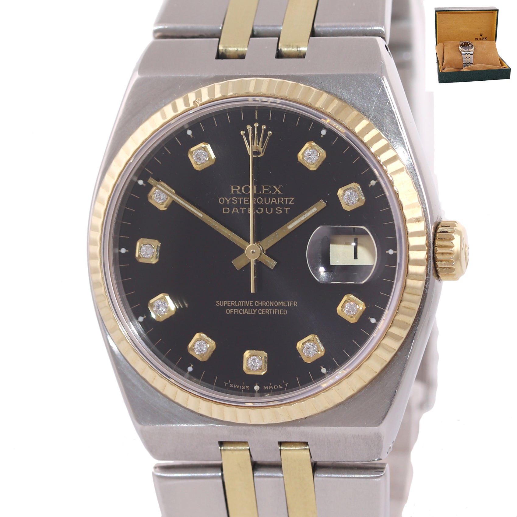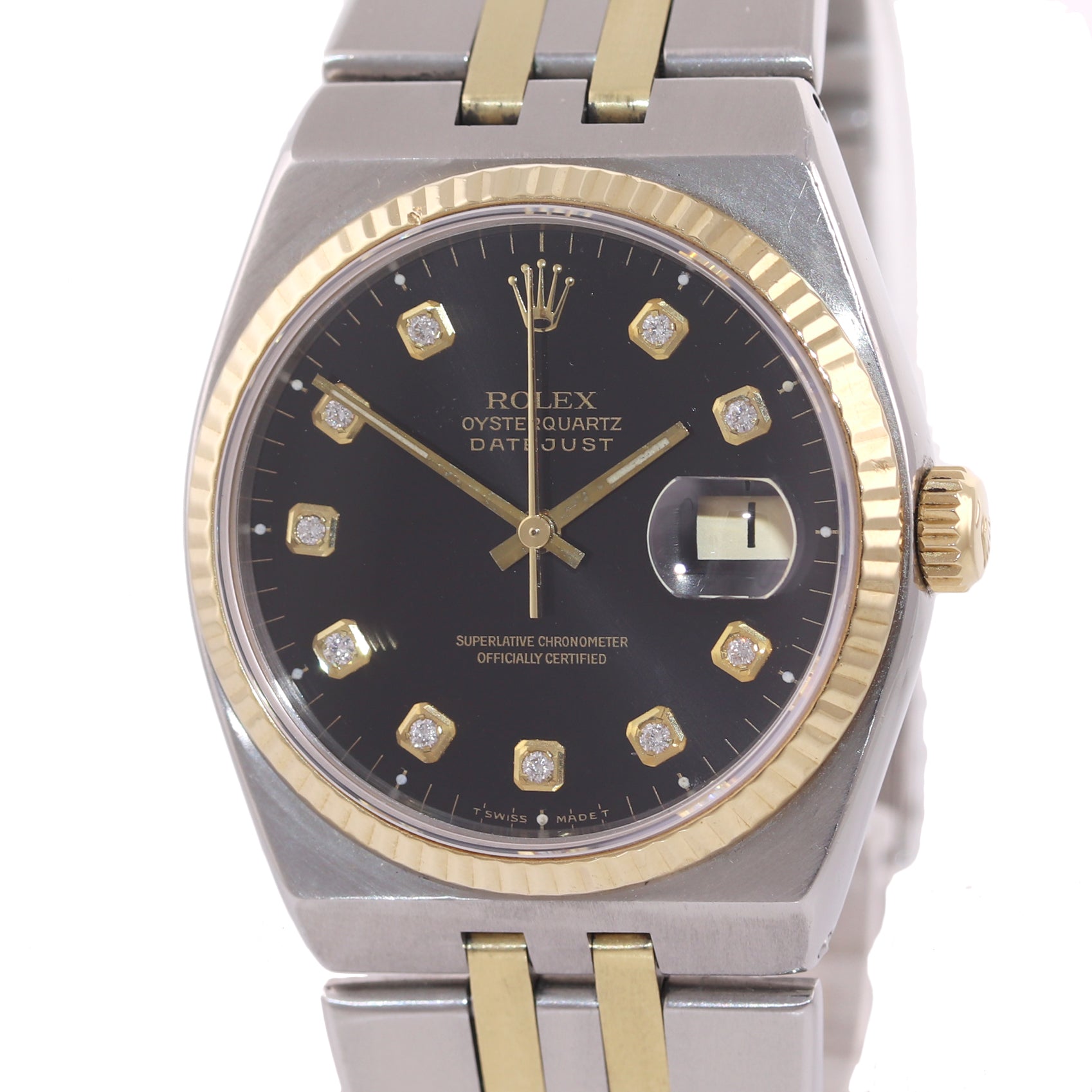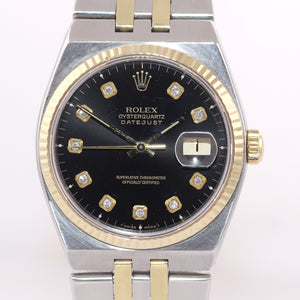 Rolex OysterQuartz DateJust 17013 Two-Tone Gold Steel Black Diamond Watch Collectors