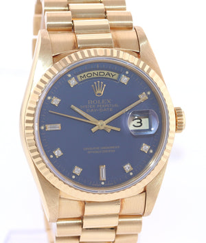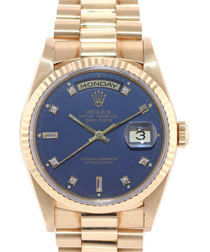 | Dial | Original Rolex Blue Diamond Dial with the day at the 12 o'clock and the date at the 3 o'clock |
