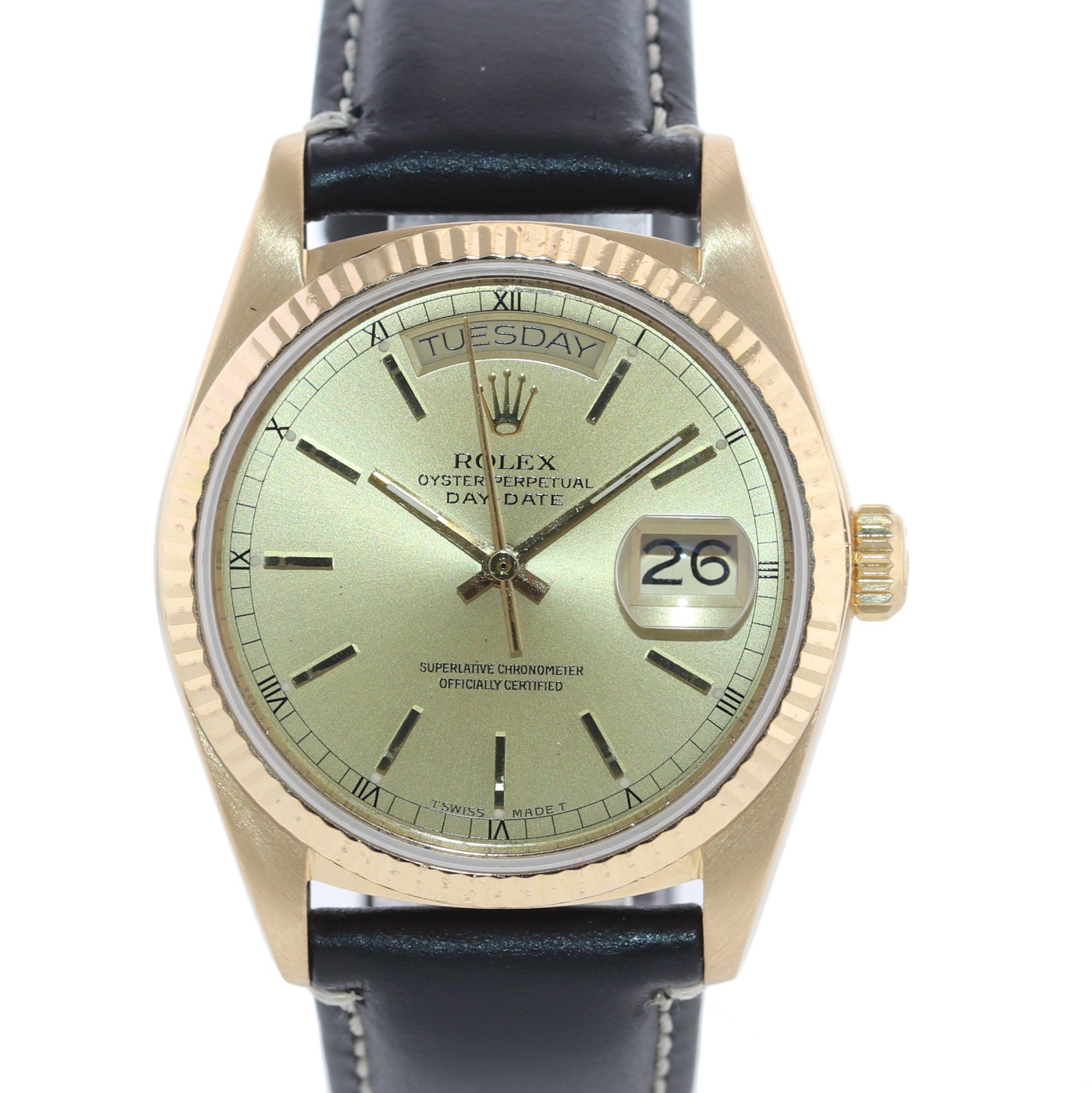 | Dial | Rolex Champagne Dial with the day at the 12 o'clock and the date at the 3 o'clock. |