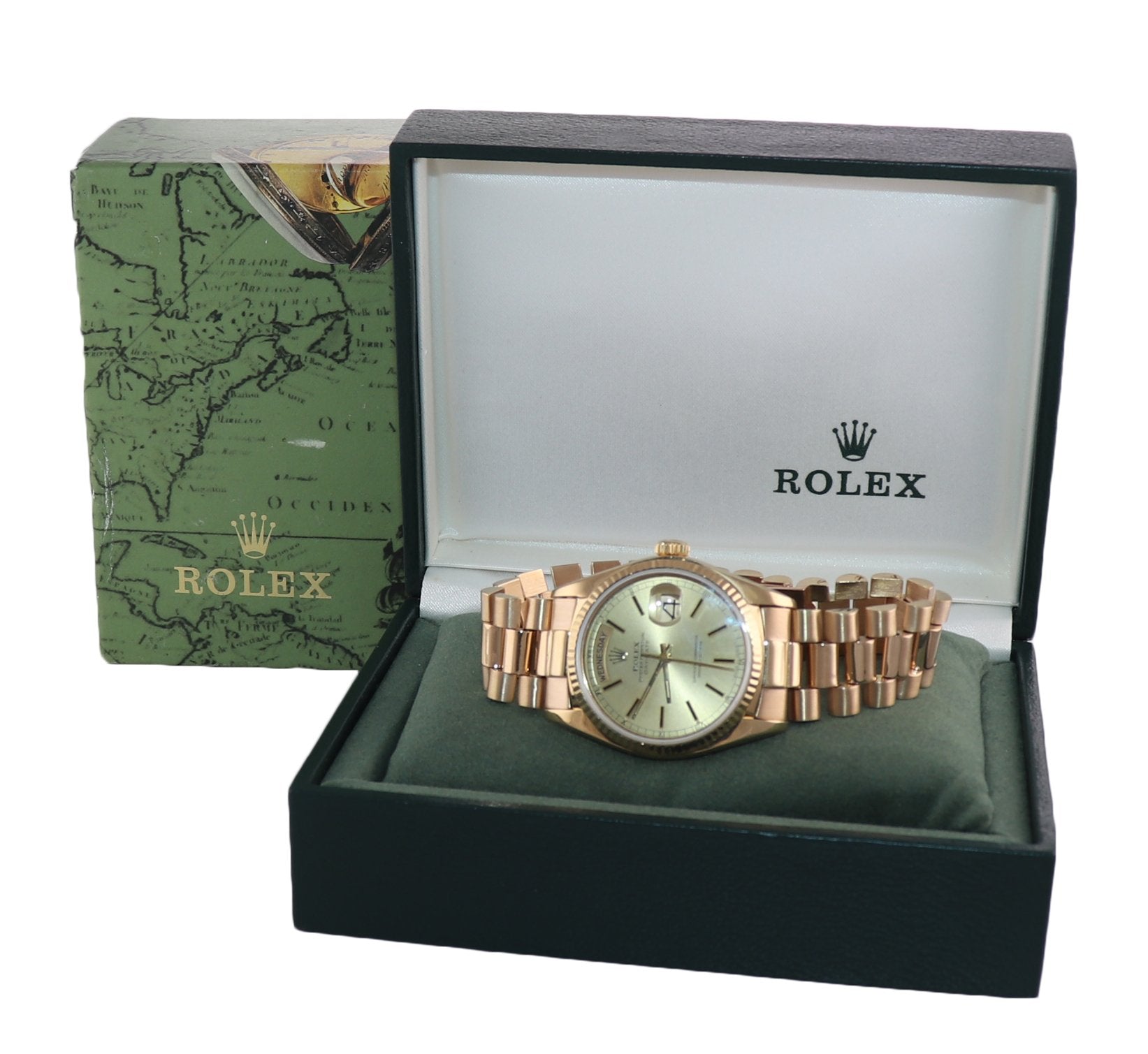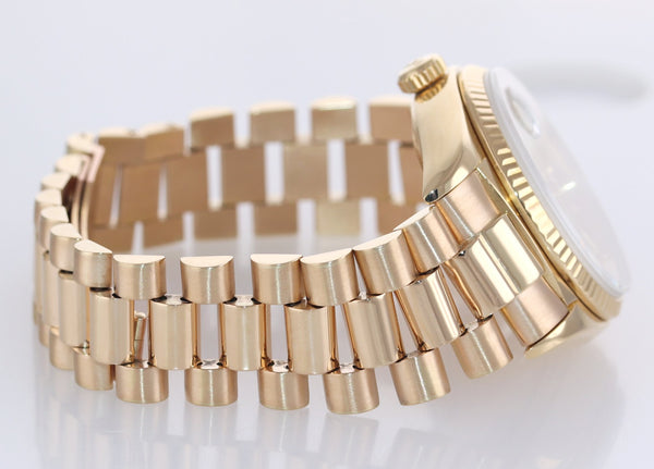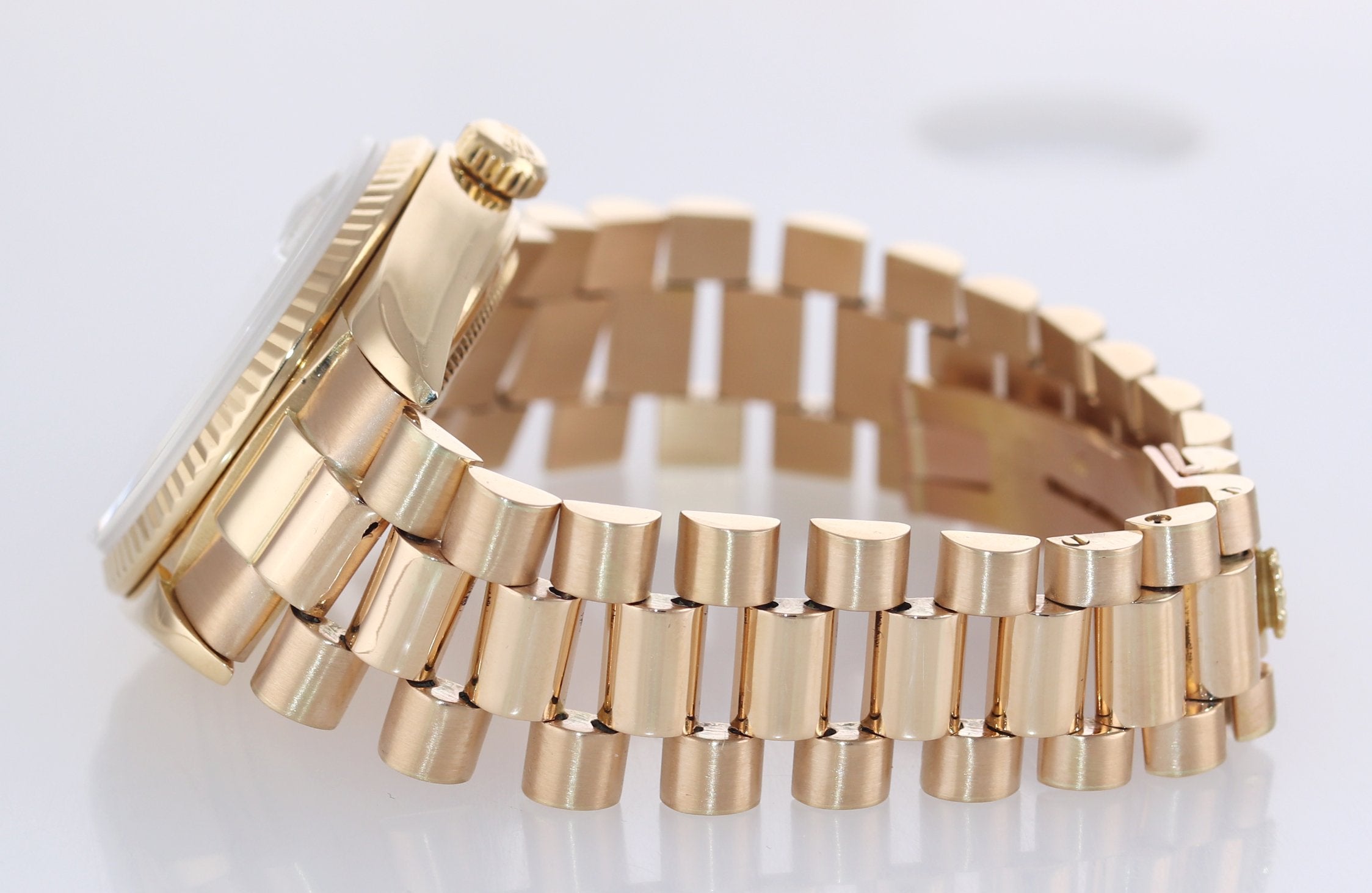 | Band | Original Rolex 18K Yellow Gold Presidential Link Bracelet with a Folding Crown-clasp (Slight slack in band from normal wear.) |
