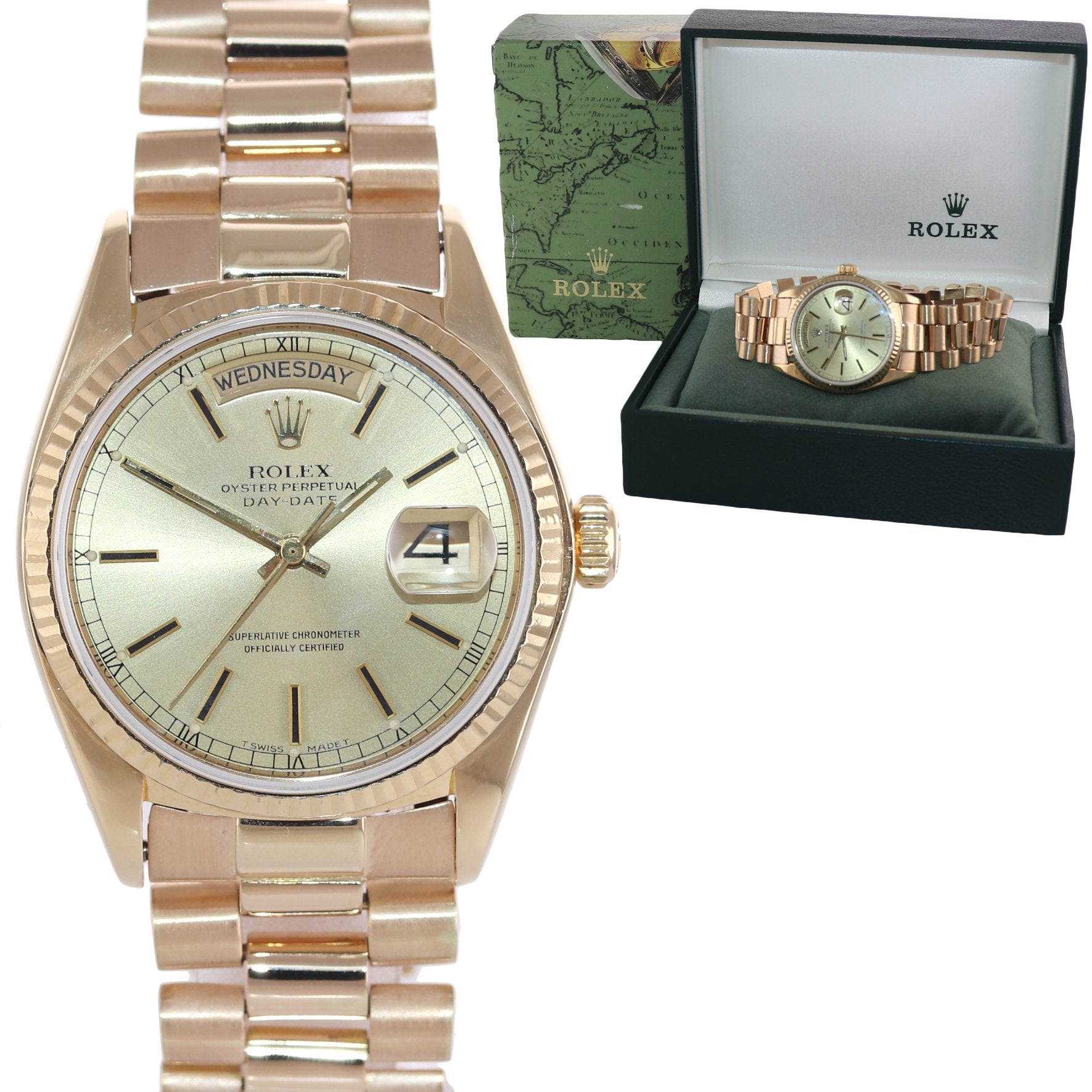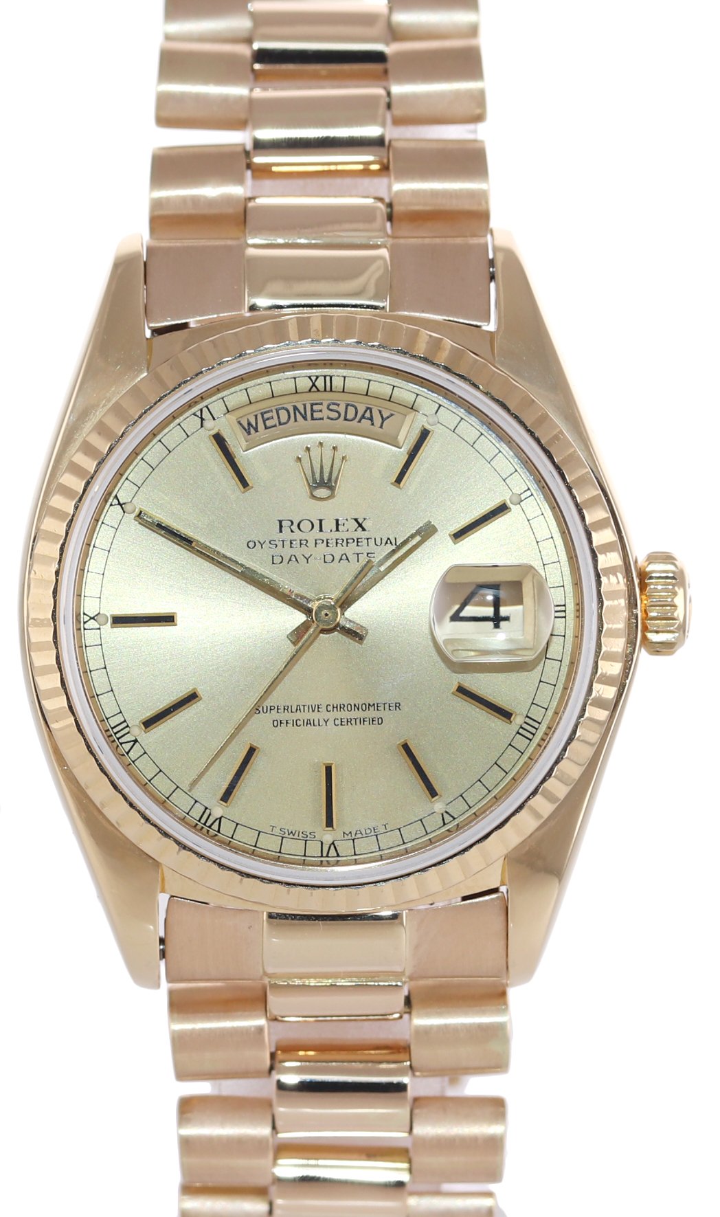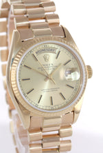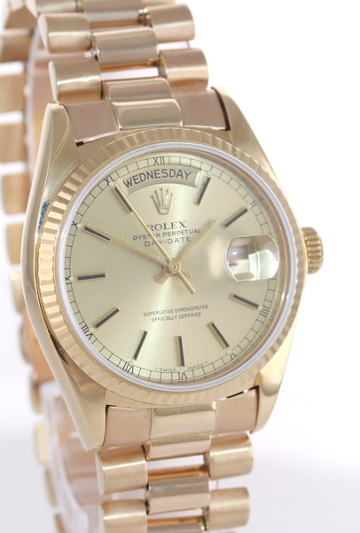 Rolex President Day Date 36mm 18038 18k Yellow Gold Champagne Stick Quickset Watch