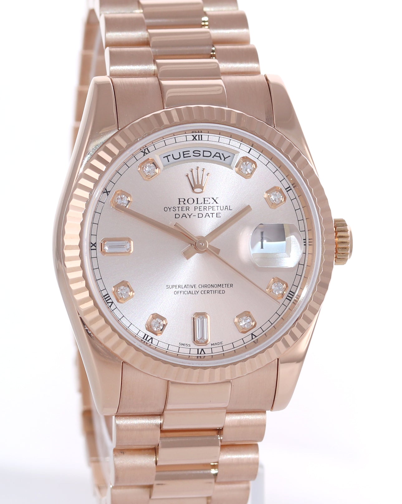 Rolex President Day Date 18k Rose Gold 36mm 118235 Diamond Watch