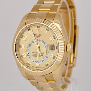 Rolex Sky-Dweller CHAMPAGNE ARABIC 18K Yellow Gold Oyster 42mm Watch 326938 BOX