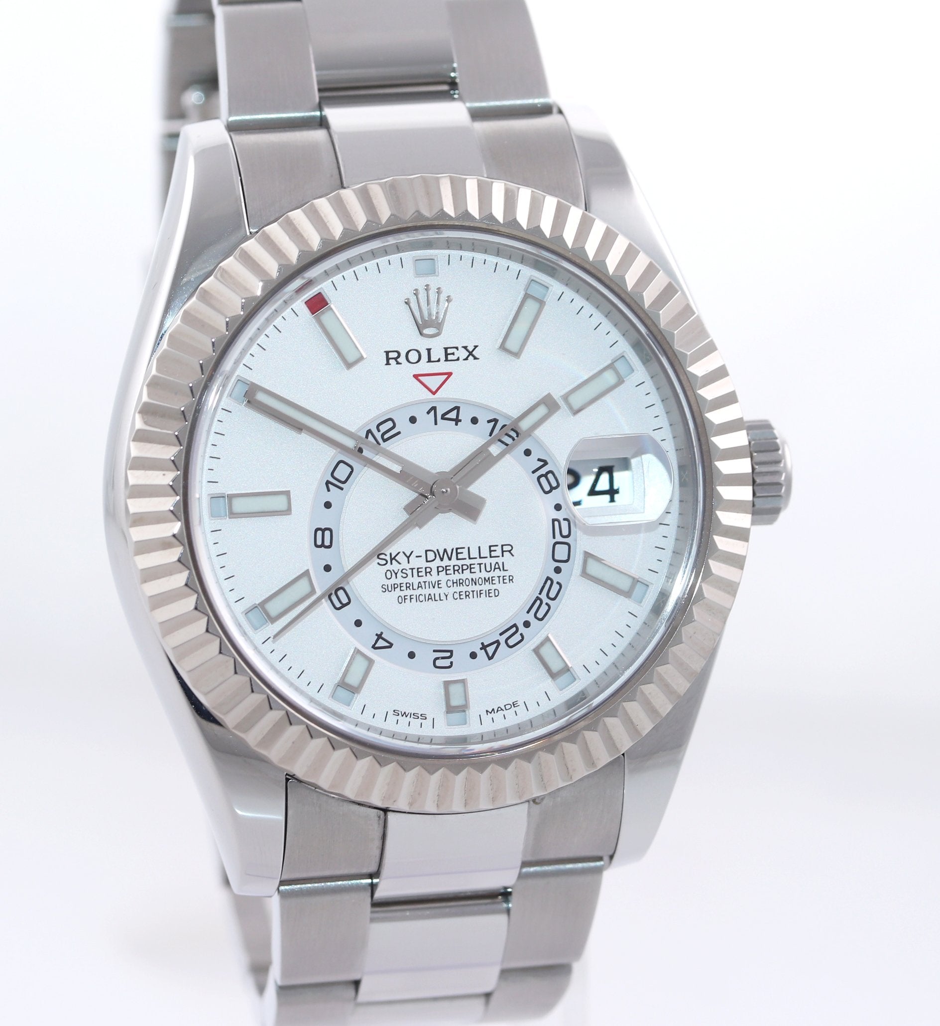 2021 Rolex Sky-Dweller Steel White Gold Fluted Bezel White 326934 42mm Watch