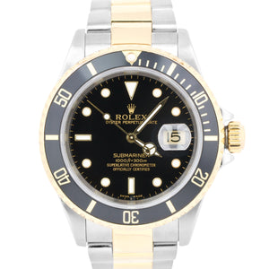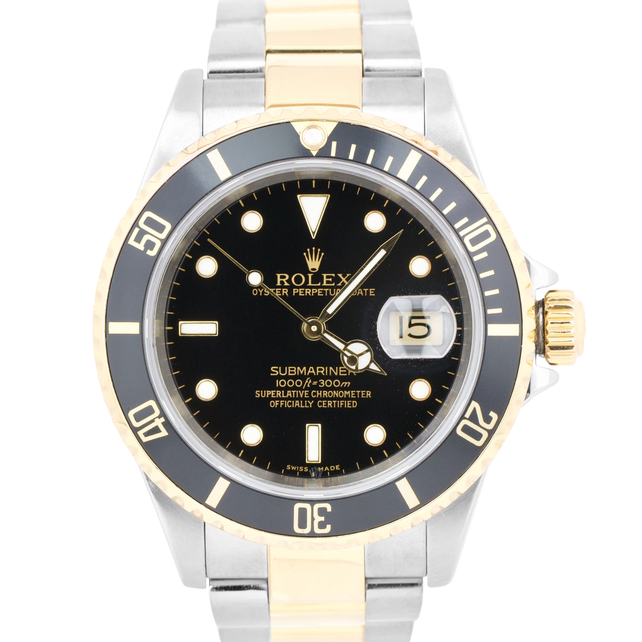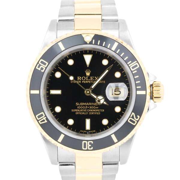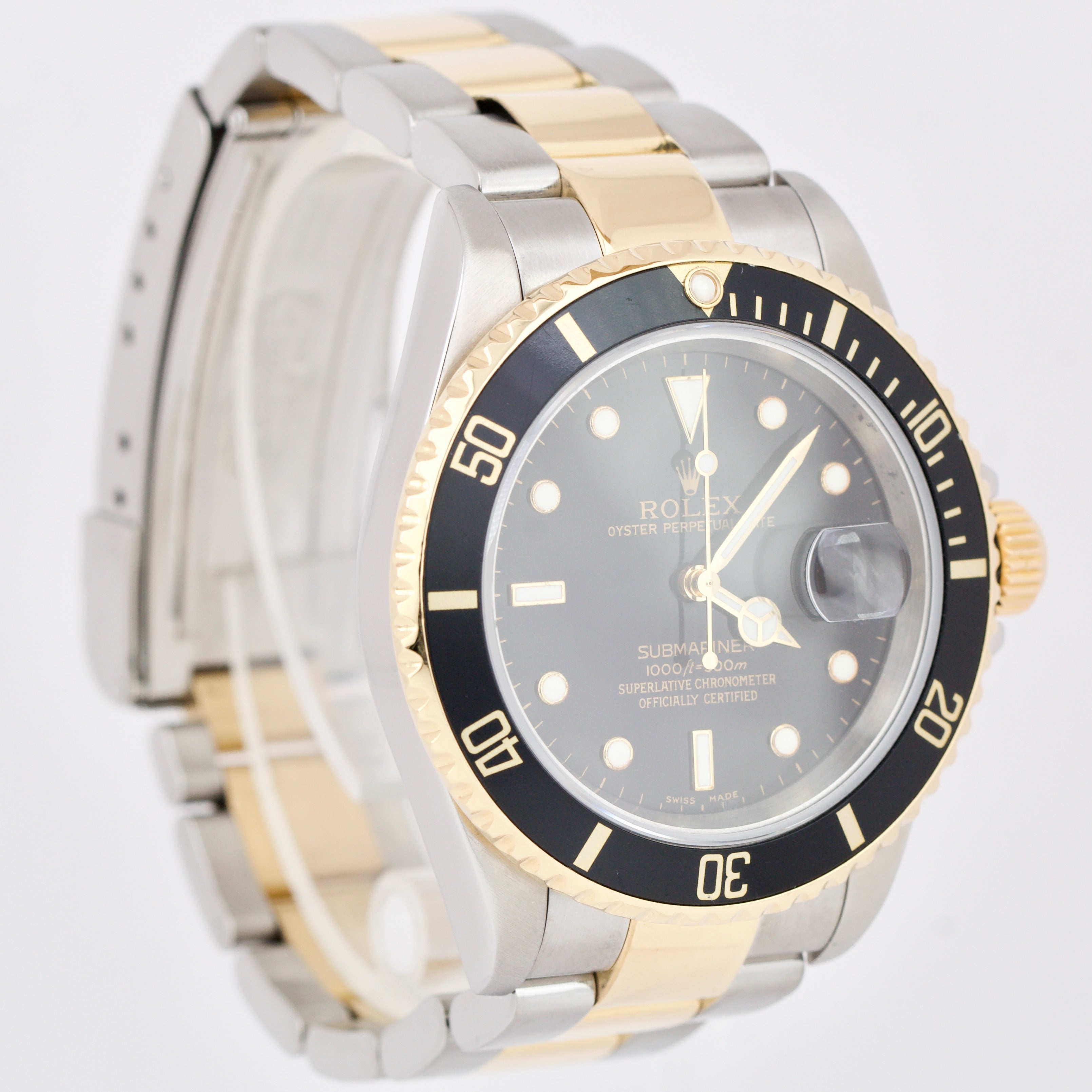 Rolex Submariner Black Two-Tone 18K Yellow Gold Stainless 16613 40mm Watch B&P