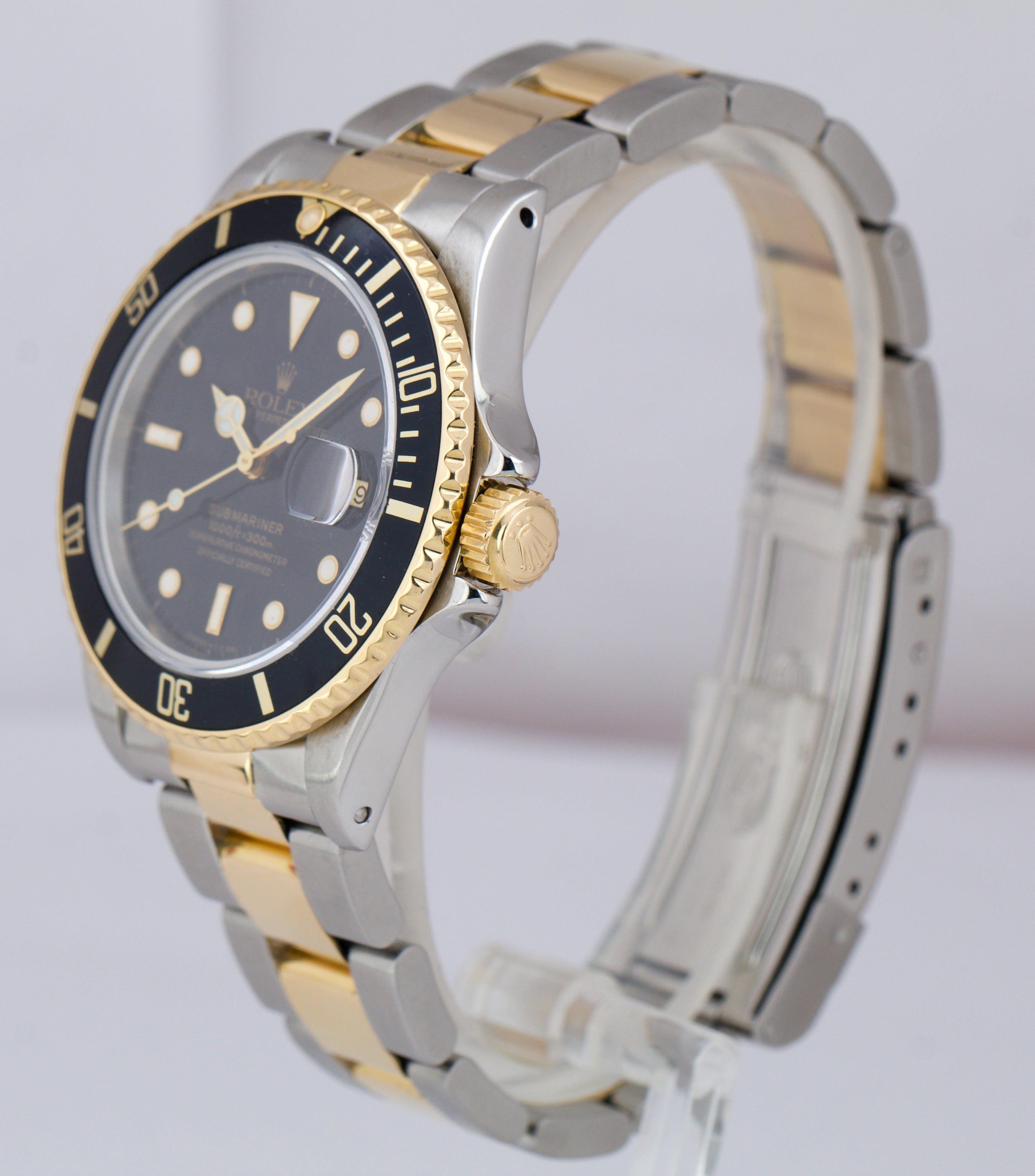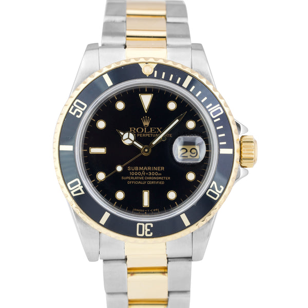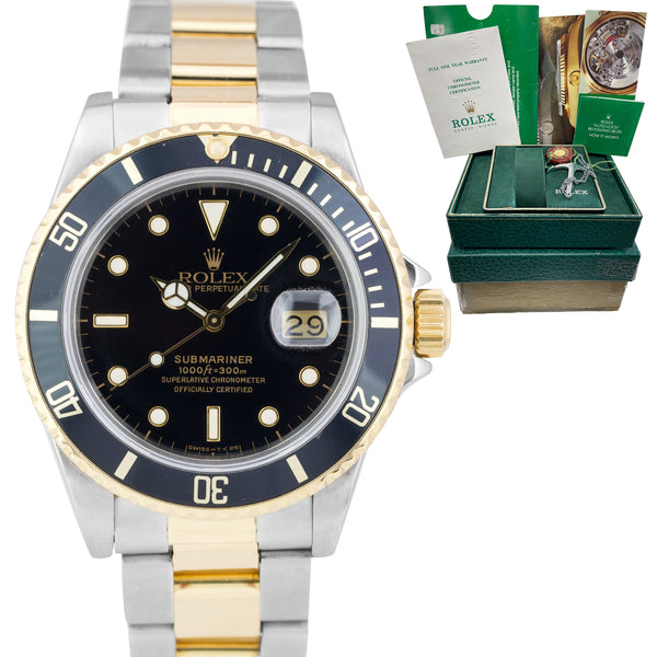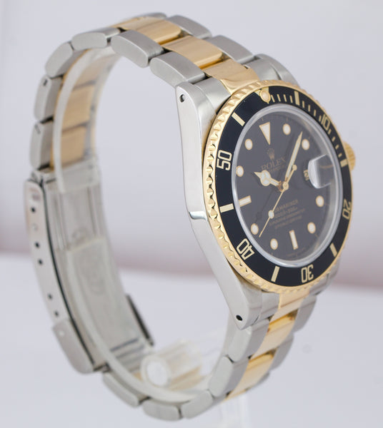 Rolex Submariner Date 18K Two-Tone Gold Steel Black 40mm Watch 16803 BOX PAPERS