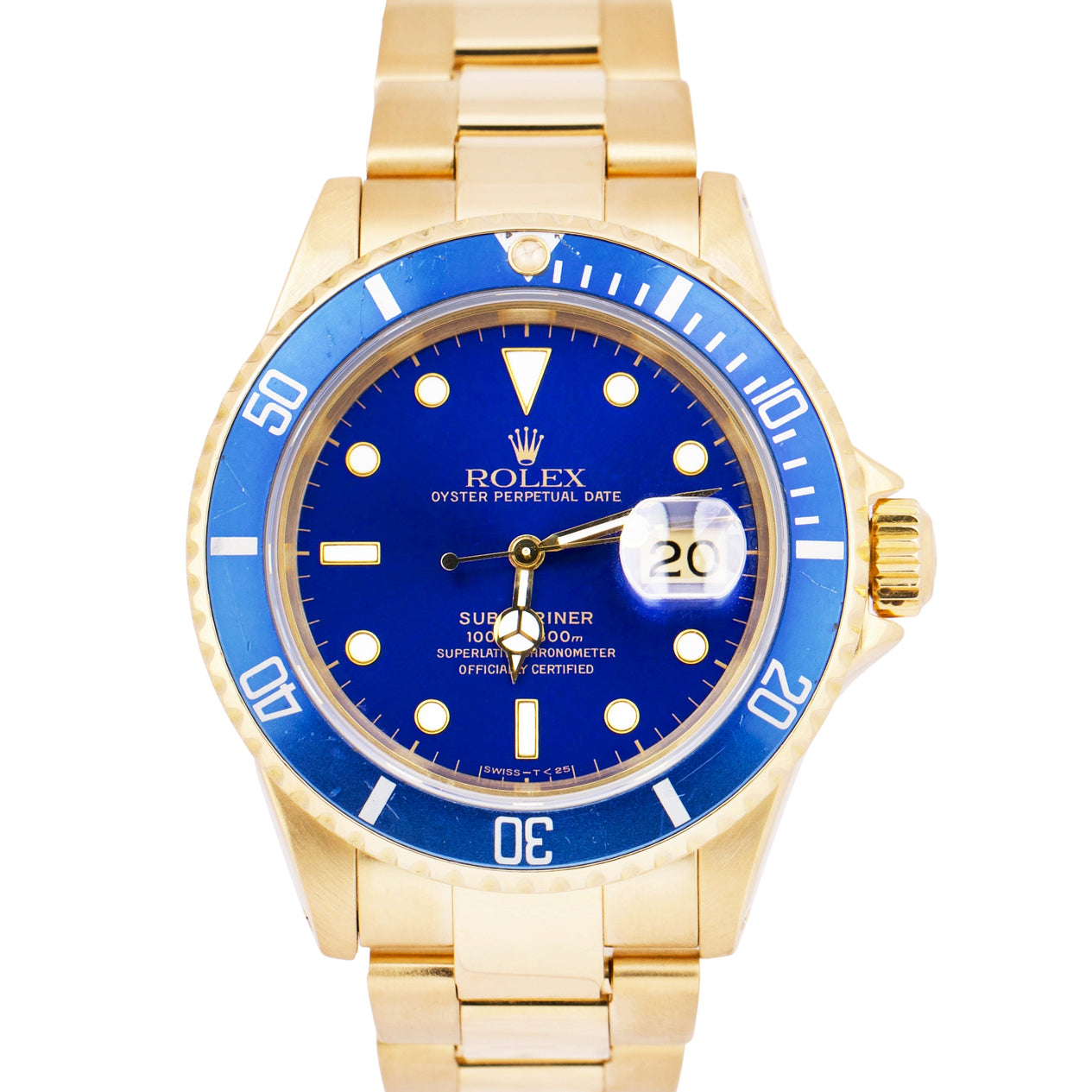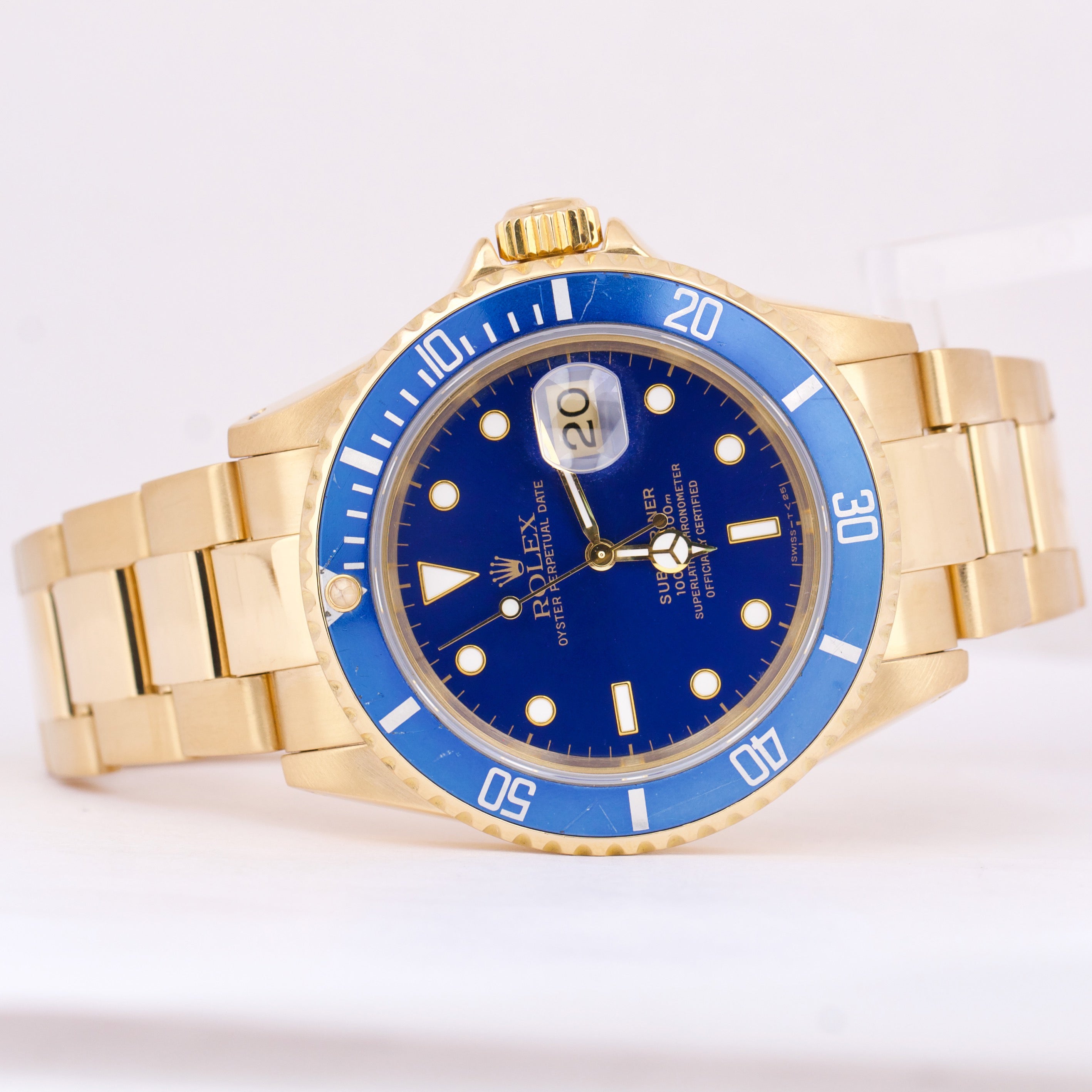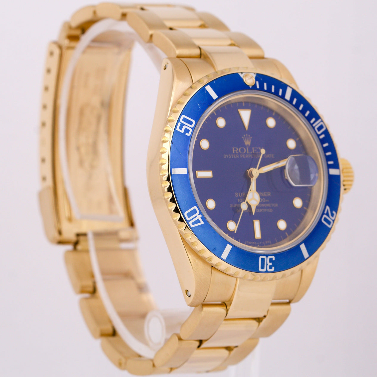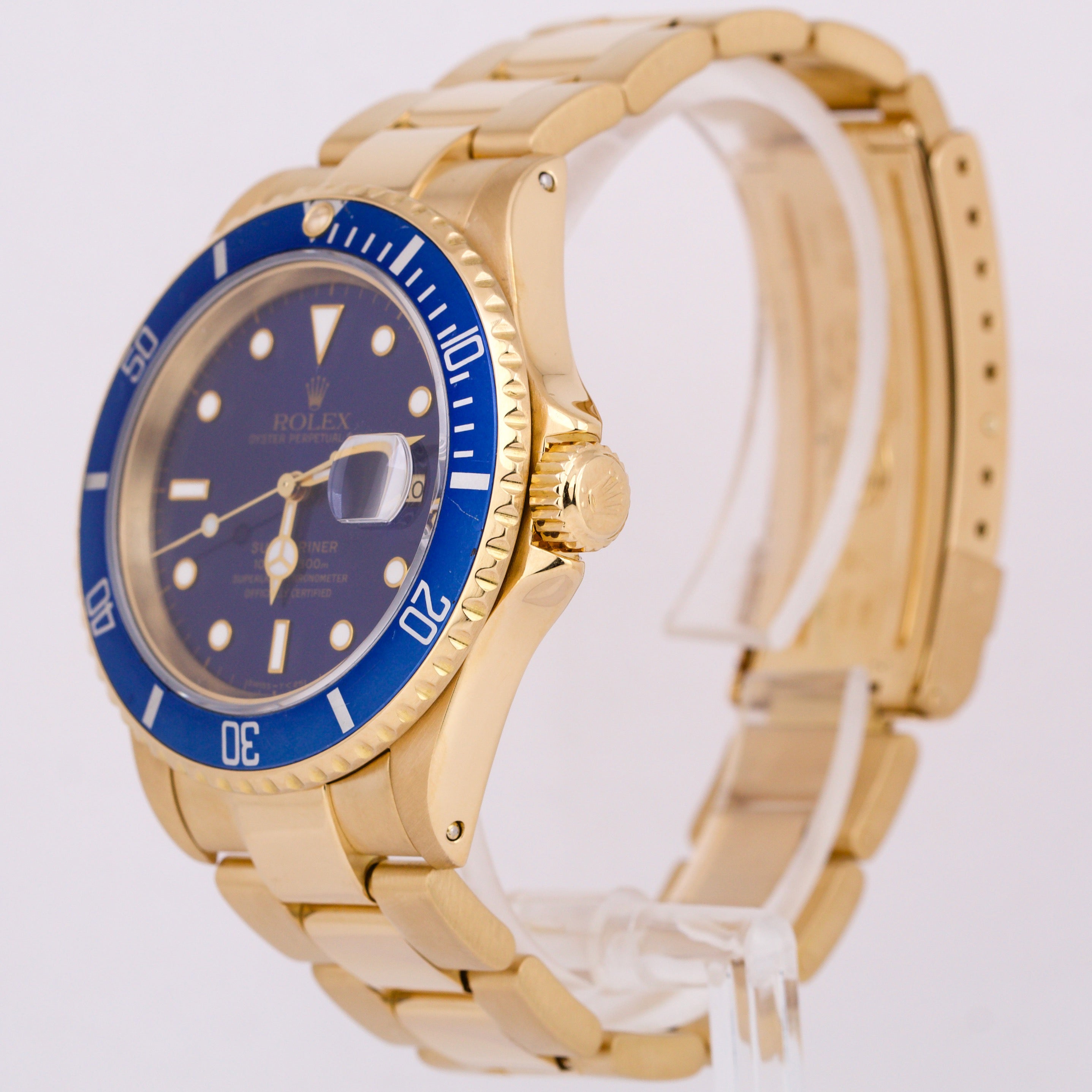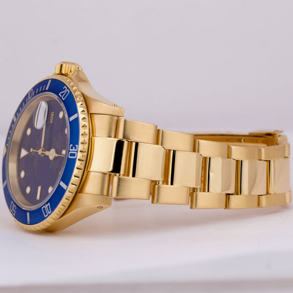 Rolex Submariner Date 18K Yellow Gold BLUE 40mm Automatic Oyster Watch 16618 LB