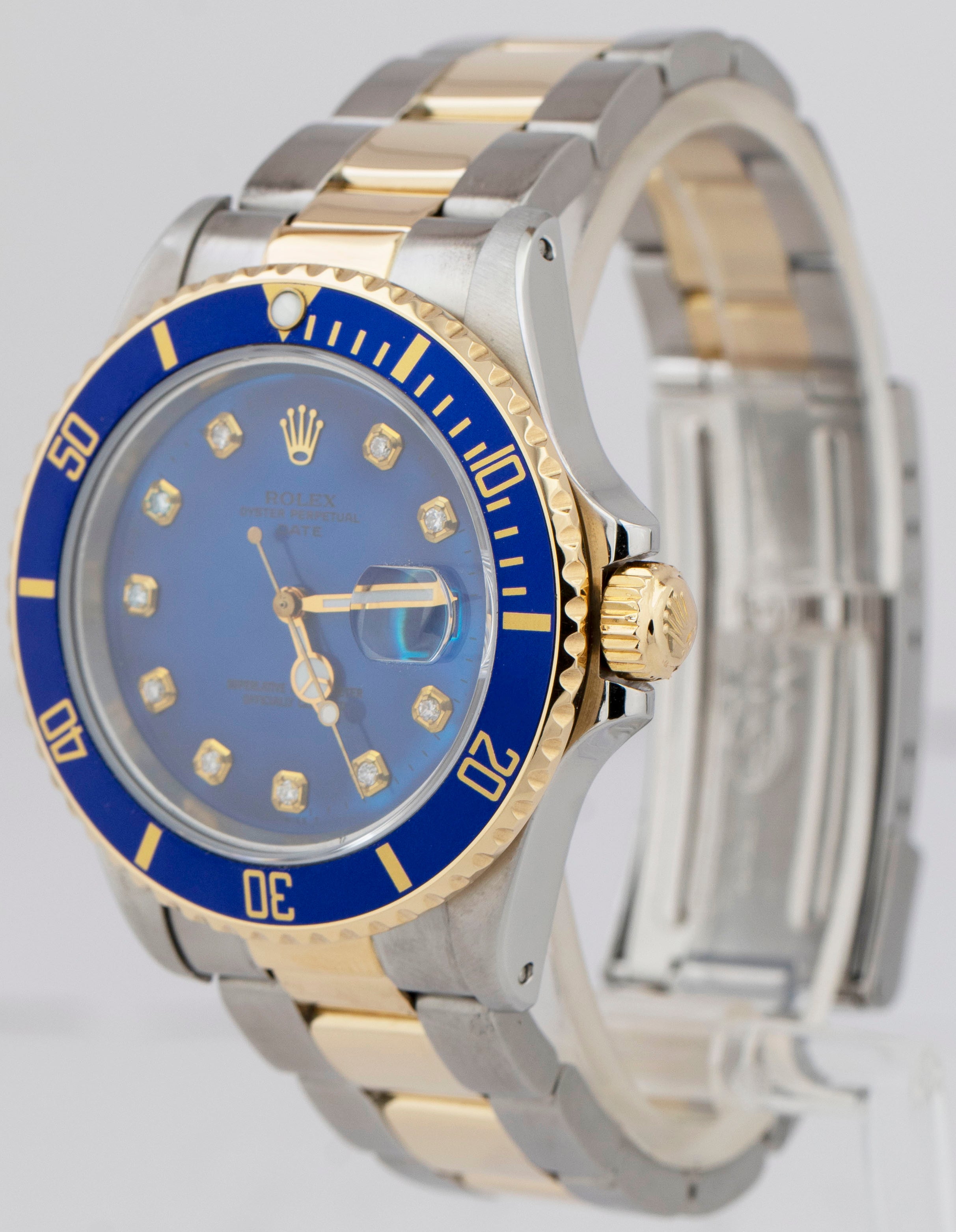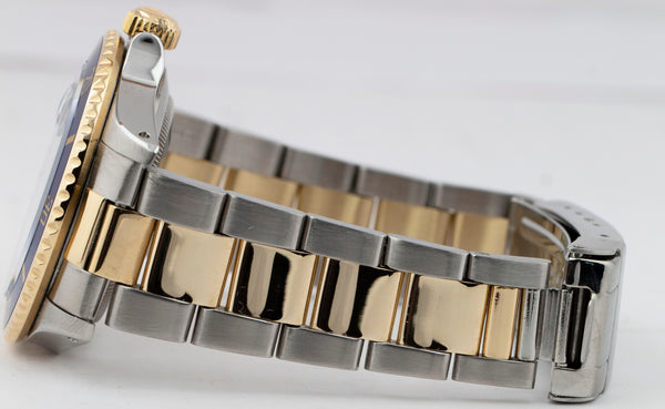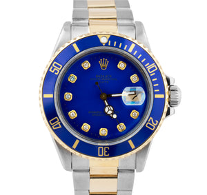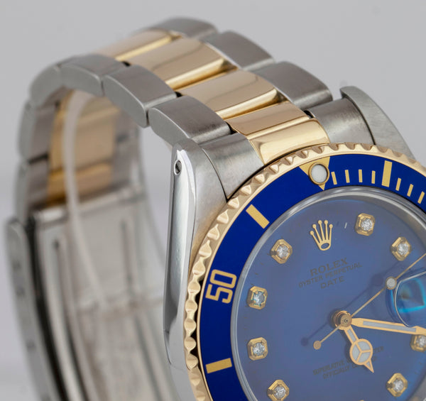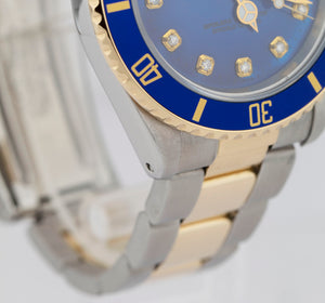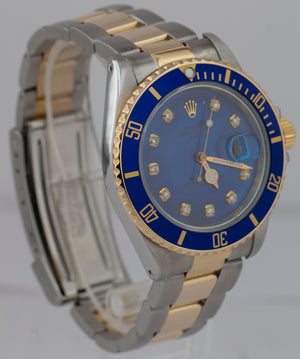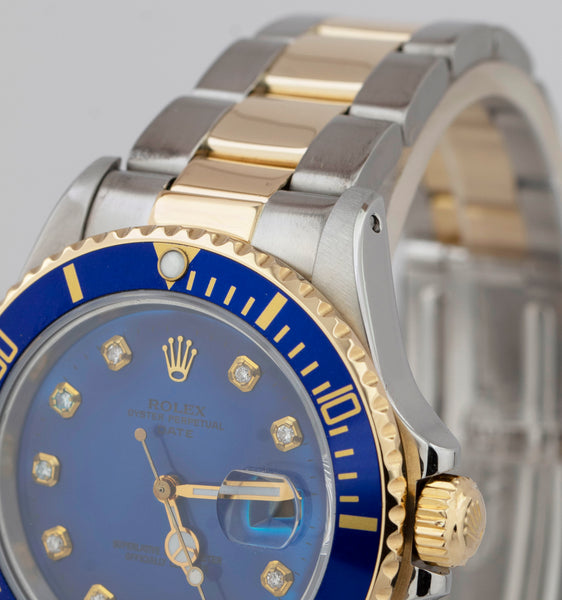 Rolex Submariner Date 18K Yellow Gold DIAMOND Stainless Blue 40mm Watch 16803