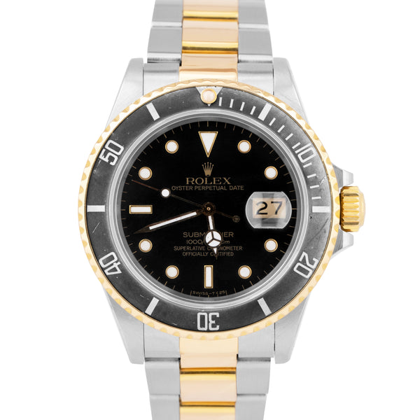 Rolex Submariner Date 18K Yellow Gold Stainless Steel Black 40mm 16803 Watch