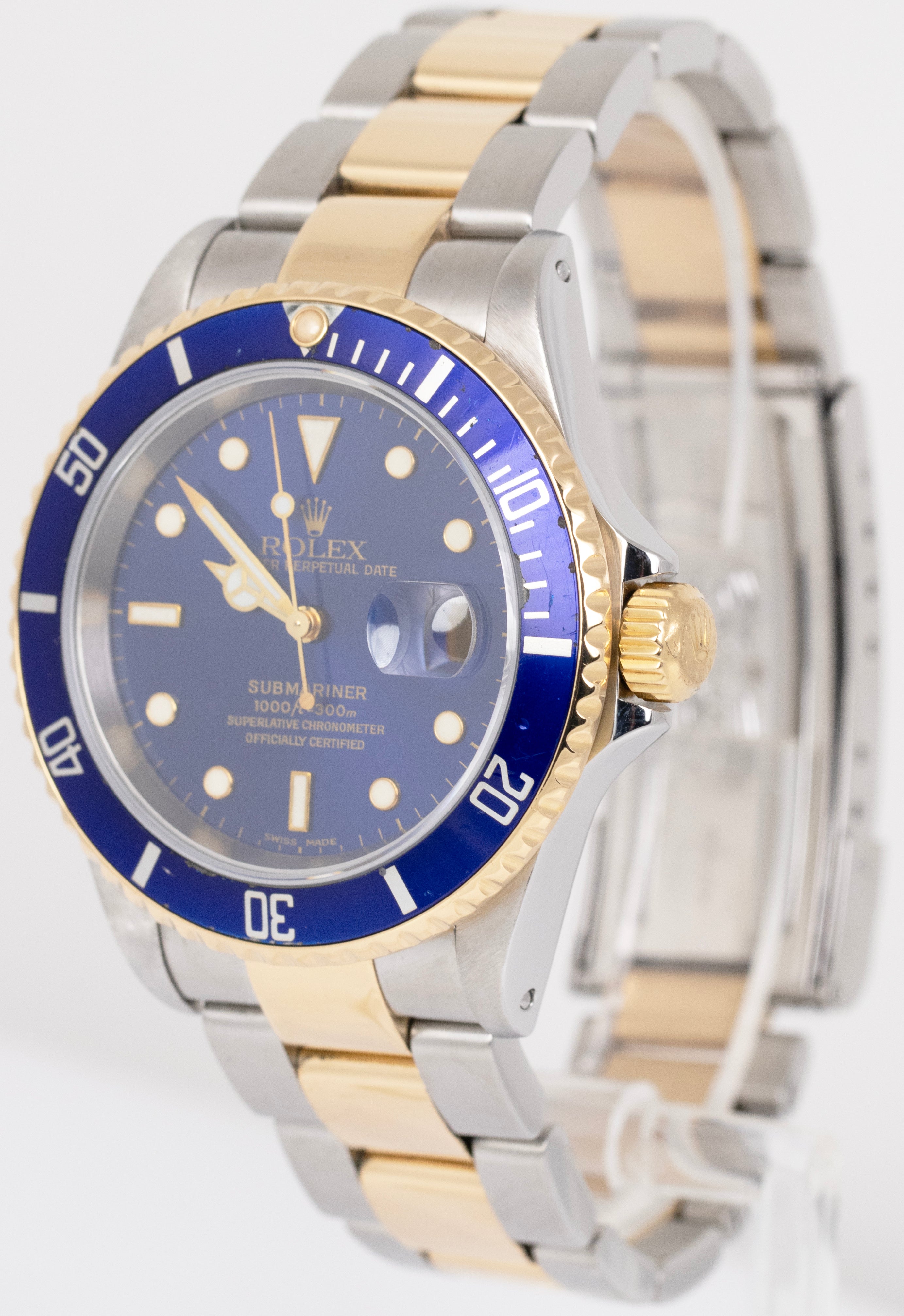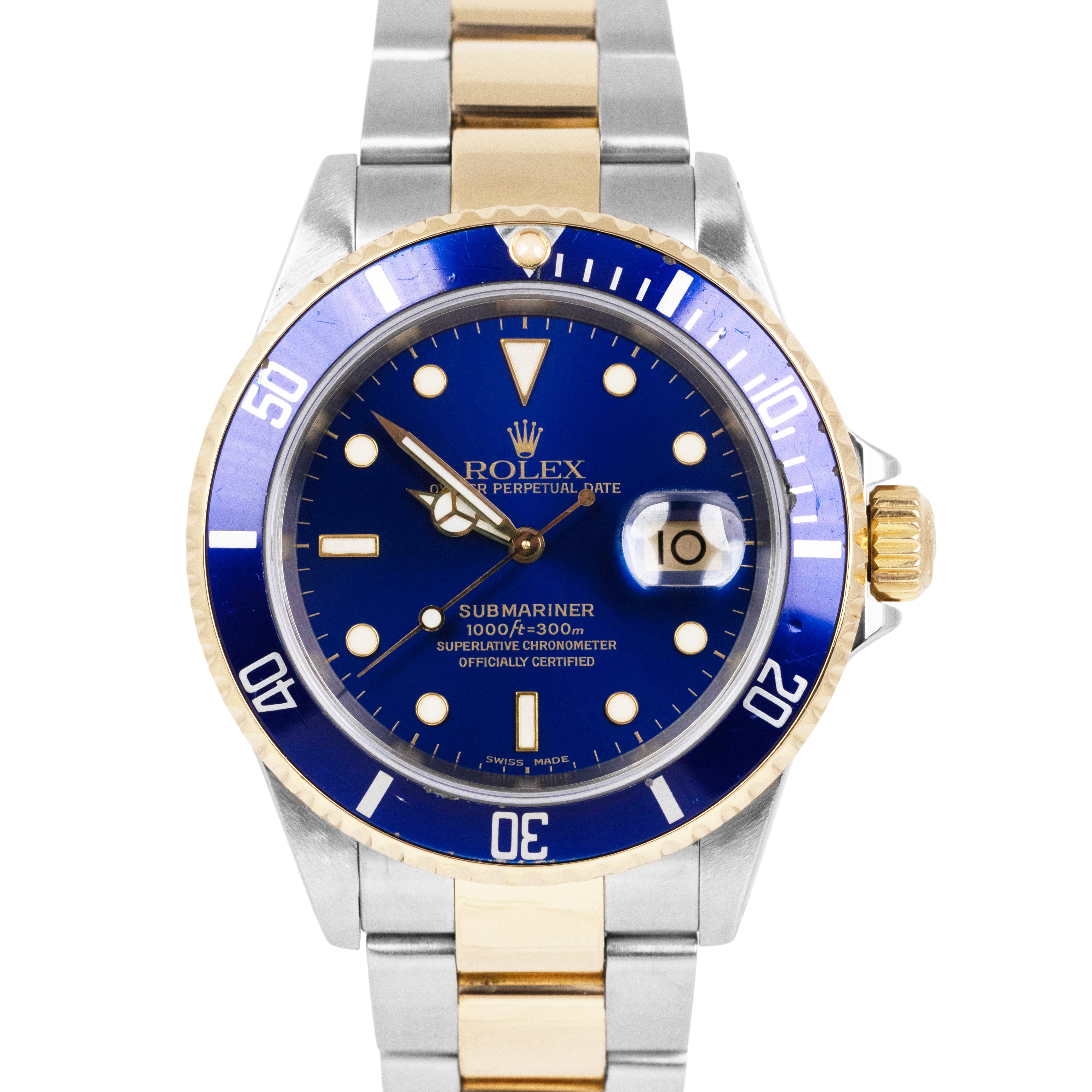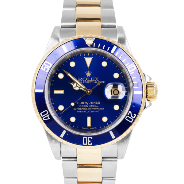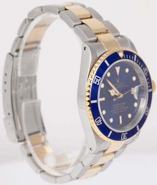 Rolex Submariner Date 40mm Blue Two-Tone 18K Yellow Gold Steel 16613 Watch BOX