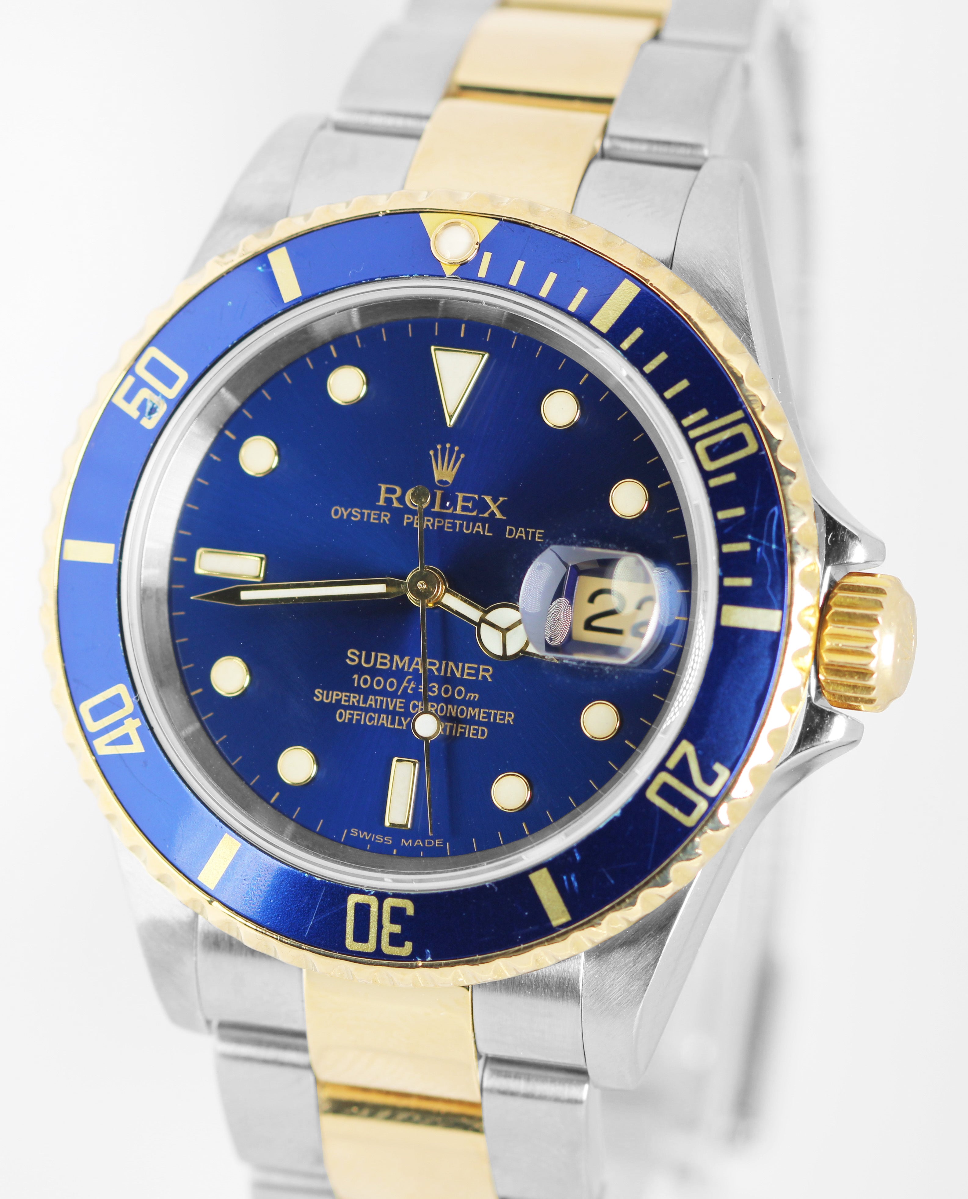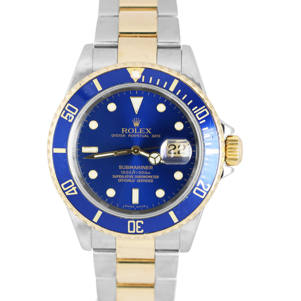 Rolex Submariner Date Two-Tone 18k Gold Buckle Blue 40mm 16613 LB Watch