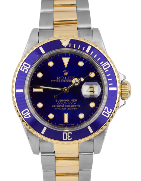 Rolex Submariner Date Two-Tone 18K Gold Stainless Black 40mm Dive Watch 16613
