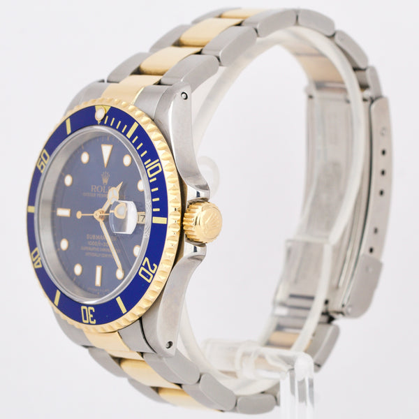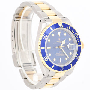 Rolex Submariner Two-Tone 18K Gold Blue Steel Buckle 40mm Oyster Watch 16613